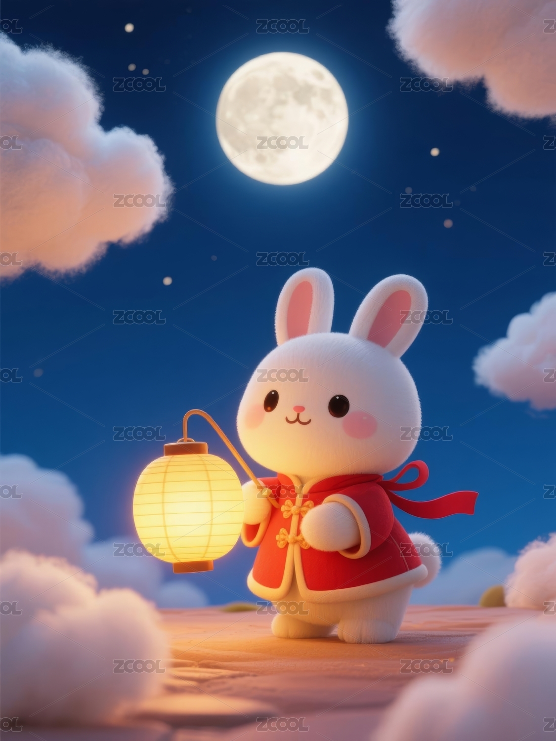 可爱的兔子在云朵上睡觉梦幻般的背景