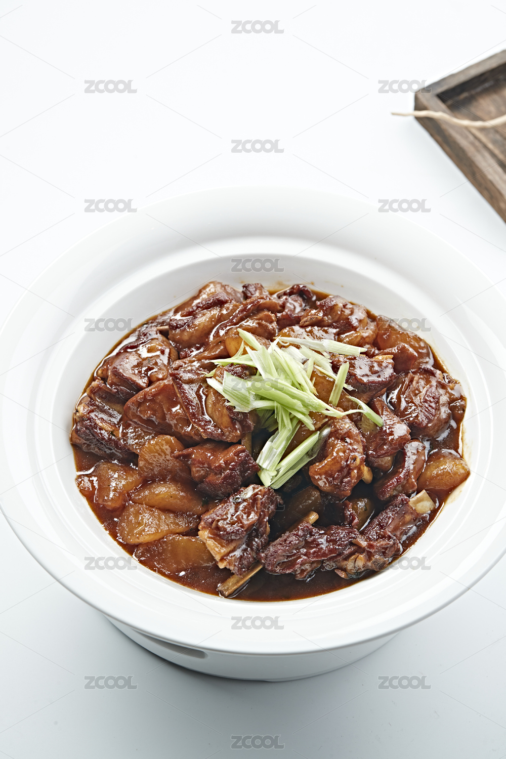 白色砂锅装的五香酱牛腱(酱焖牛肉)