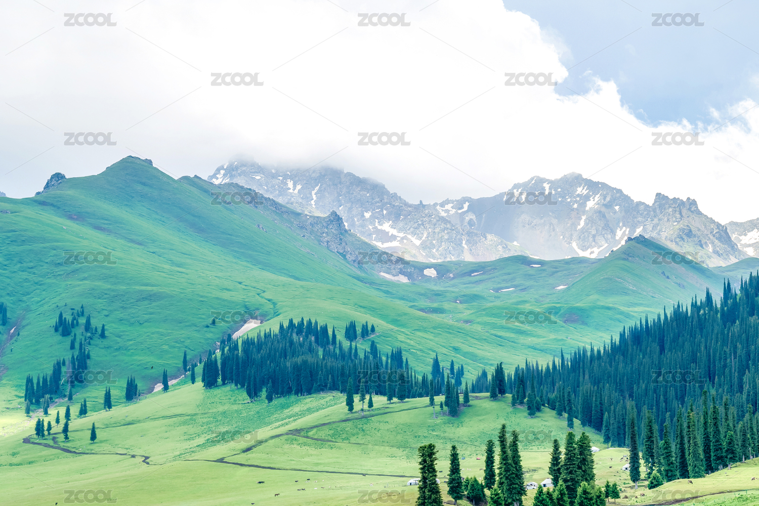 中国新疆伊犁尼勒克唐布拉雪山草原风光