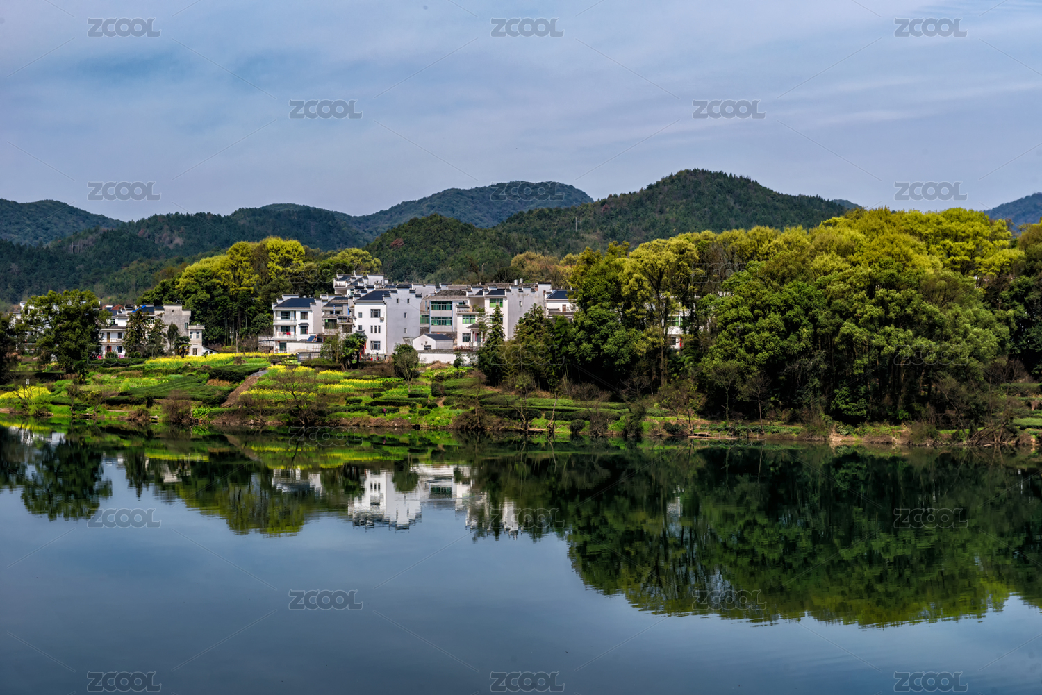 中国安徽省歙县昌溪村春天风光