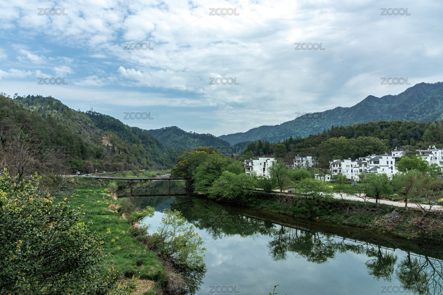 山水,乡村,小桥,河流,民居,绿植,自然,山林,春色,宁静