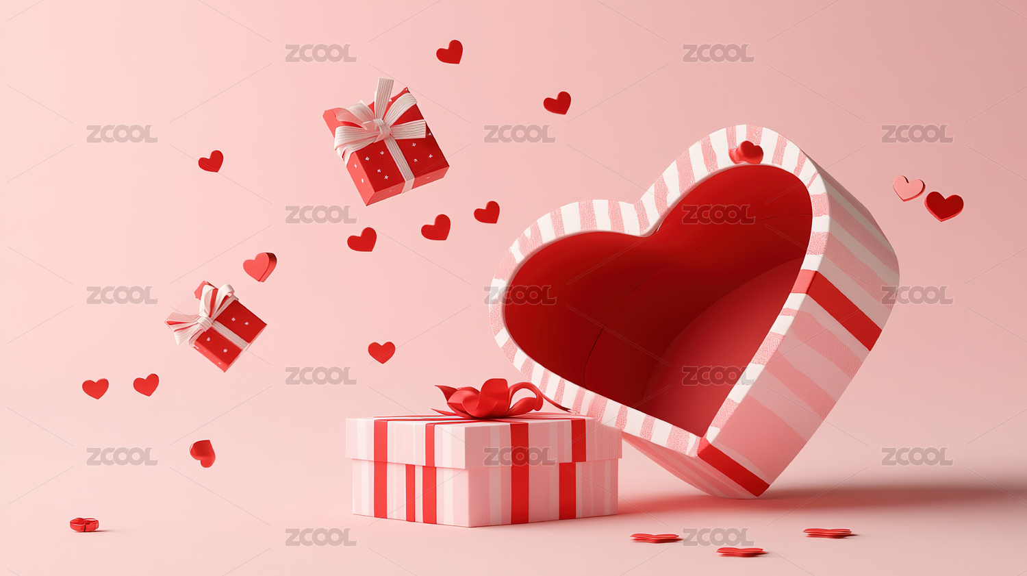 情人节,礼盒,爱心,节日,浪漫,礼物,红色,粉色,氛围,漂浮