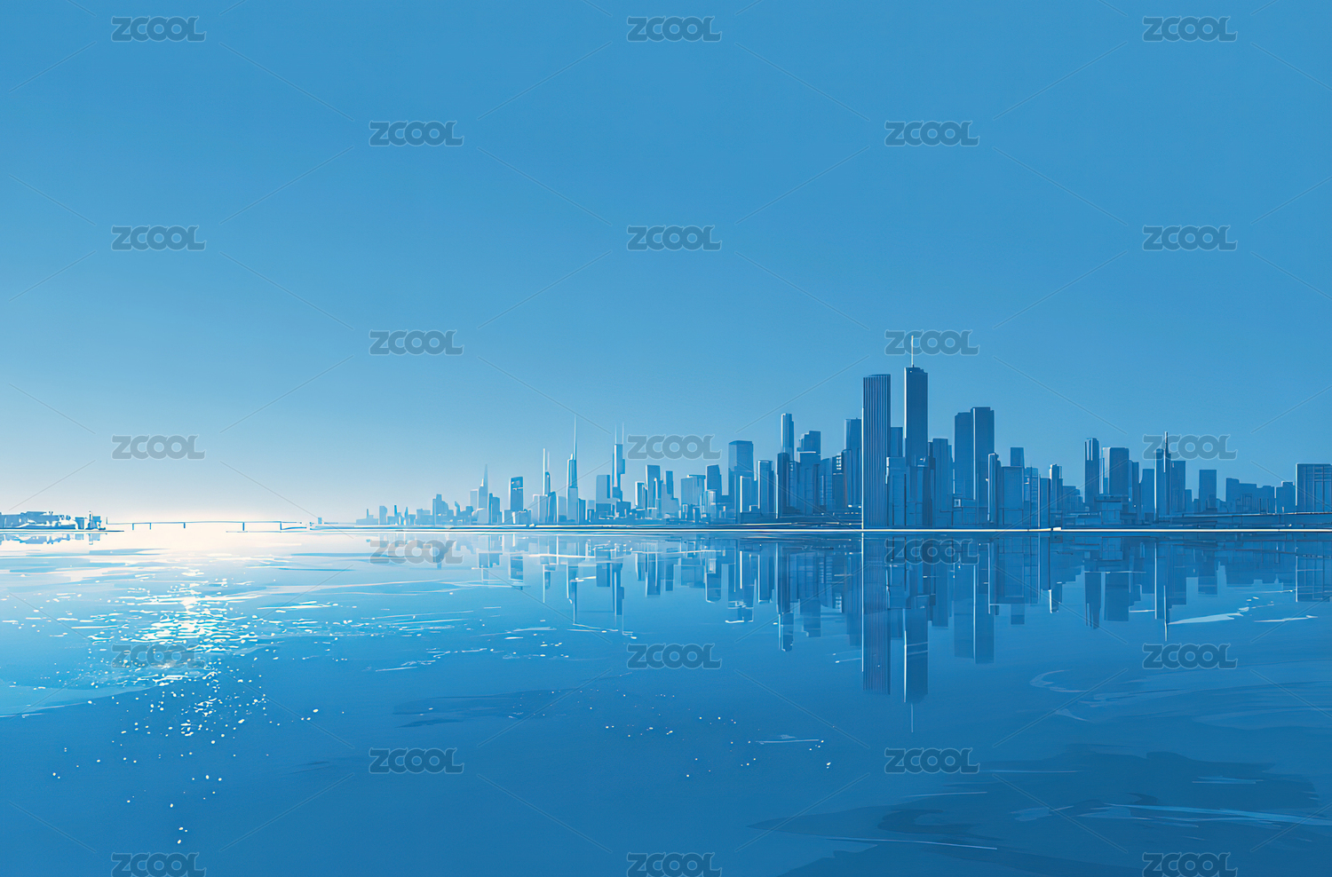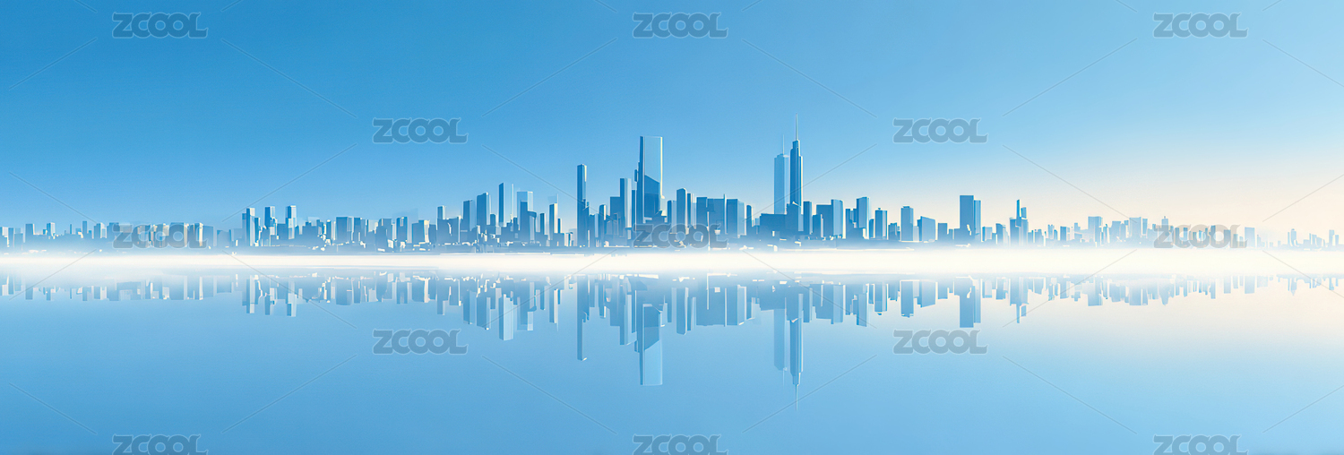 城市天际线倒影水面