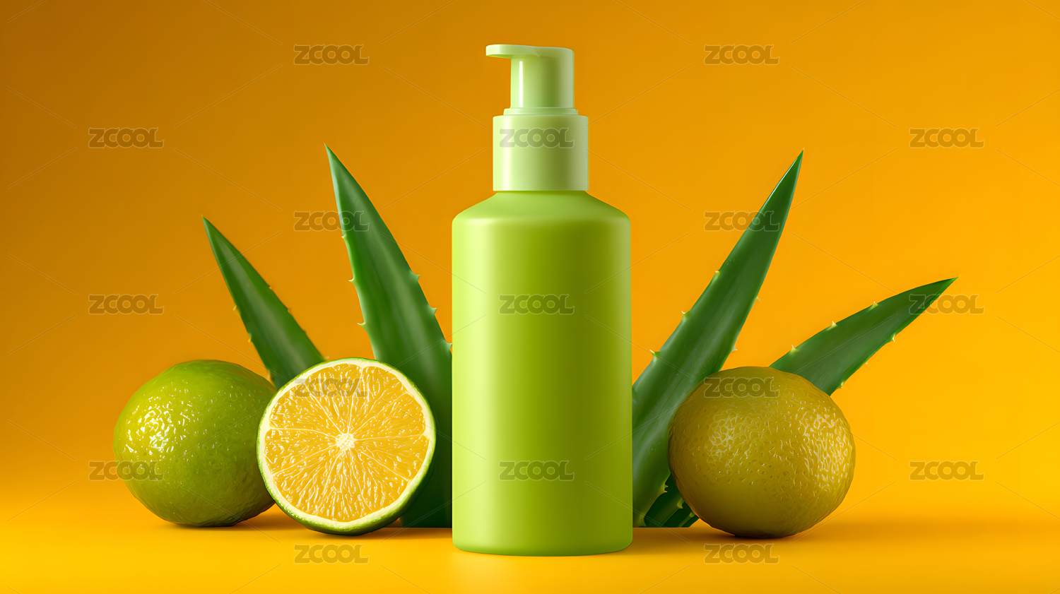 哑光护肤爽肤水瓶的柑橘芦荟清新背景