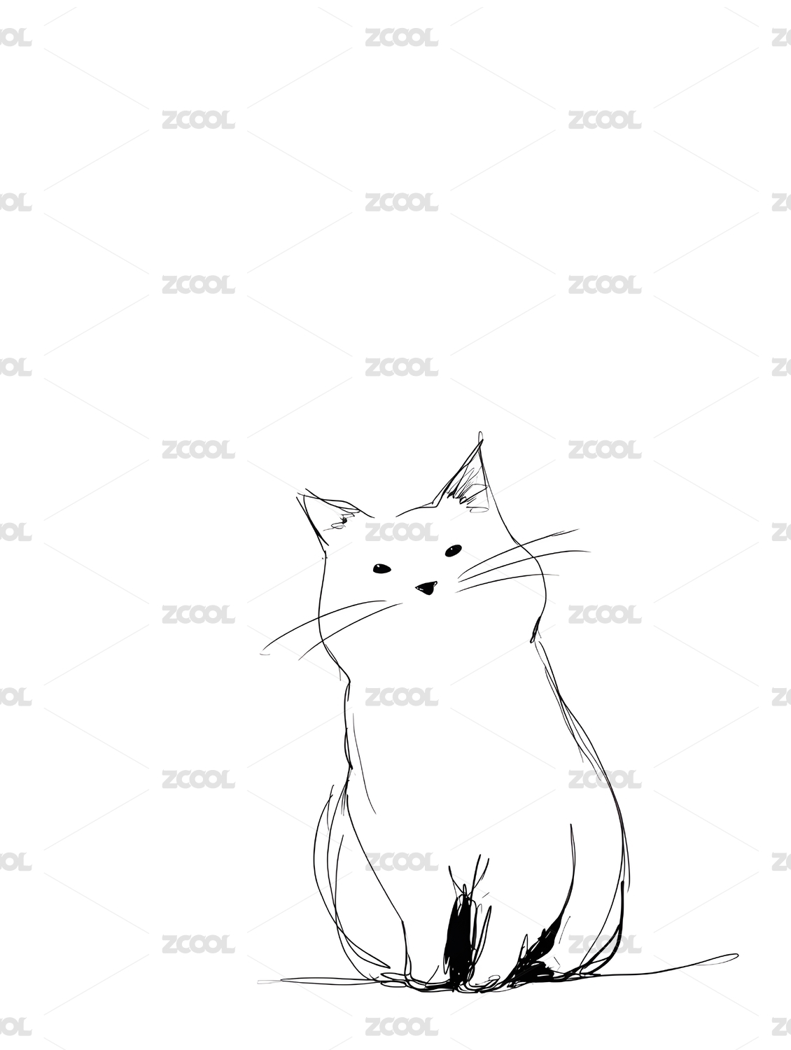 猫咪,线稿,卡通,插画,可爱,简笔,动物,黑白,绘画,形象