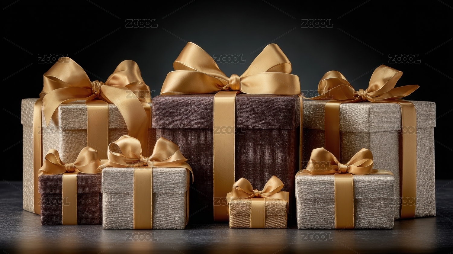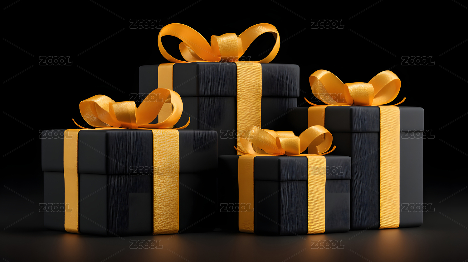 礼物,盒子,包装,黑色,金色,丝带,圣诞,节日,庆祝,装饰