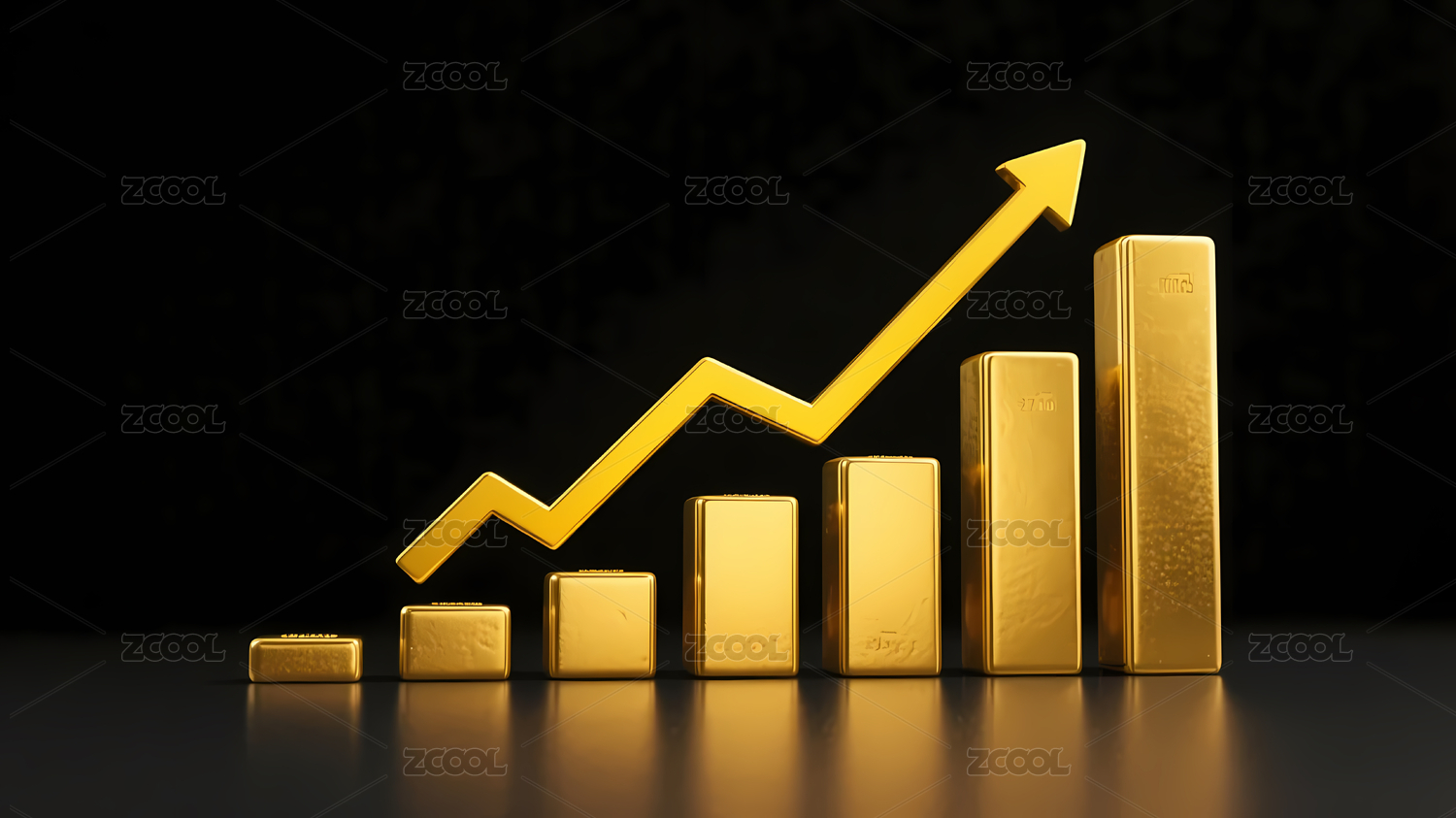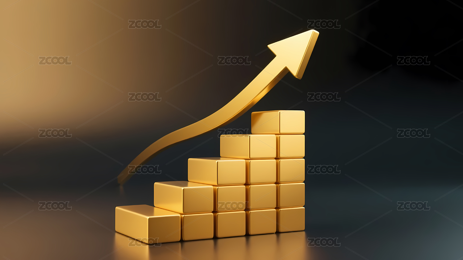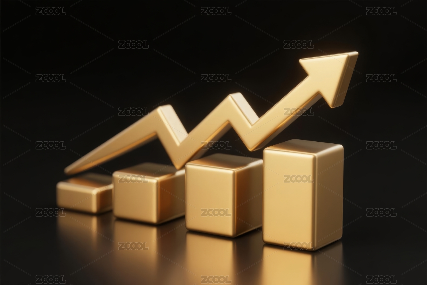 金色渐变玻璃质感金融柱状图增长箭头背景