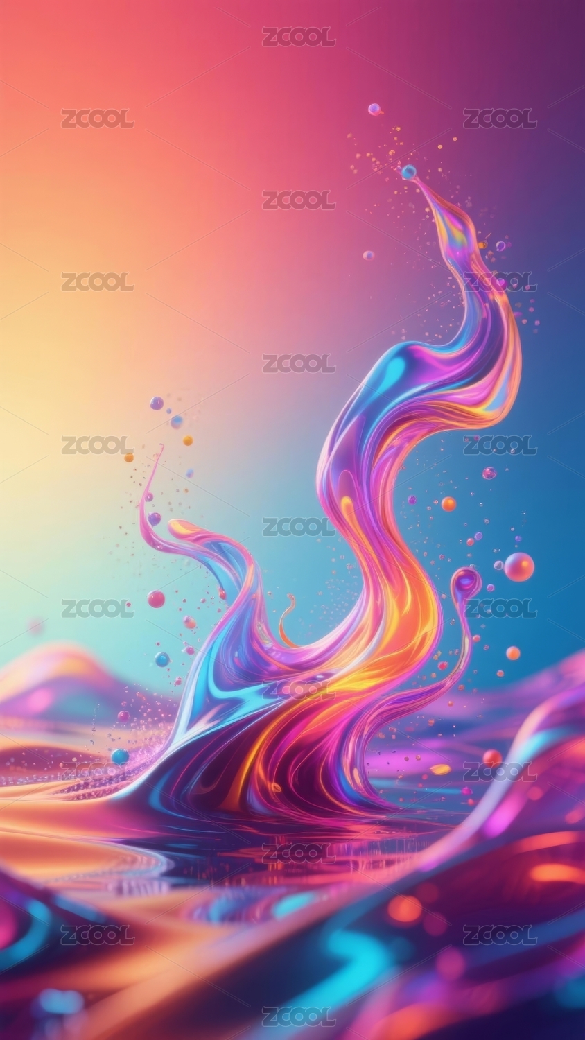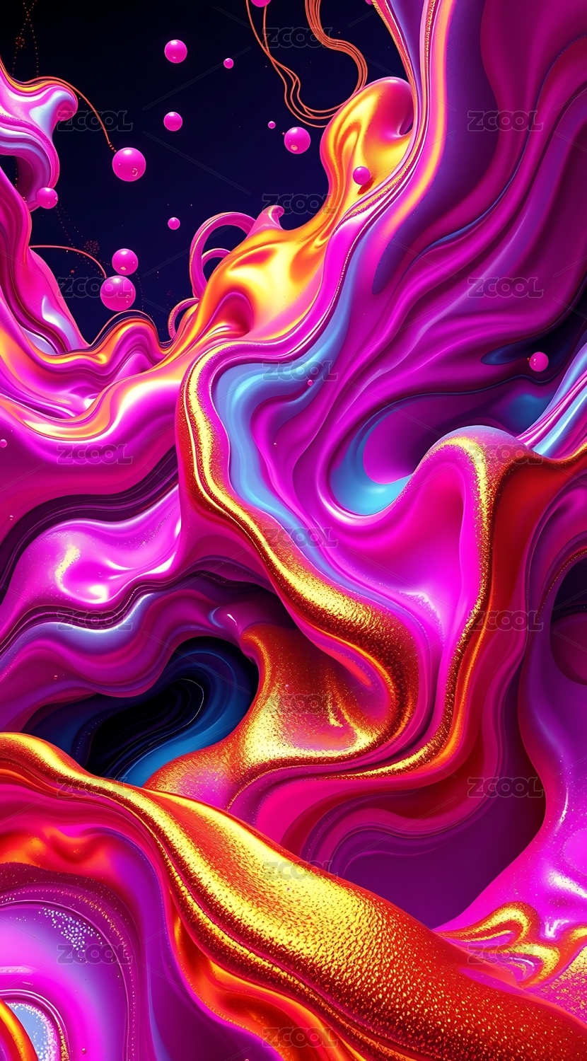 数码霓虹涂鸦大理石漩涡曲线抽象海报背景