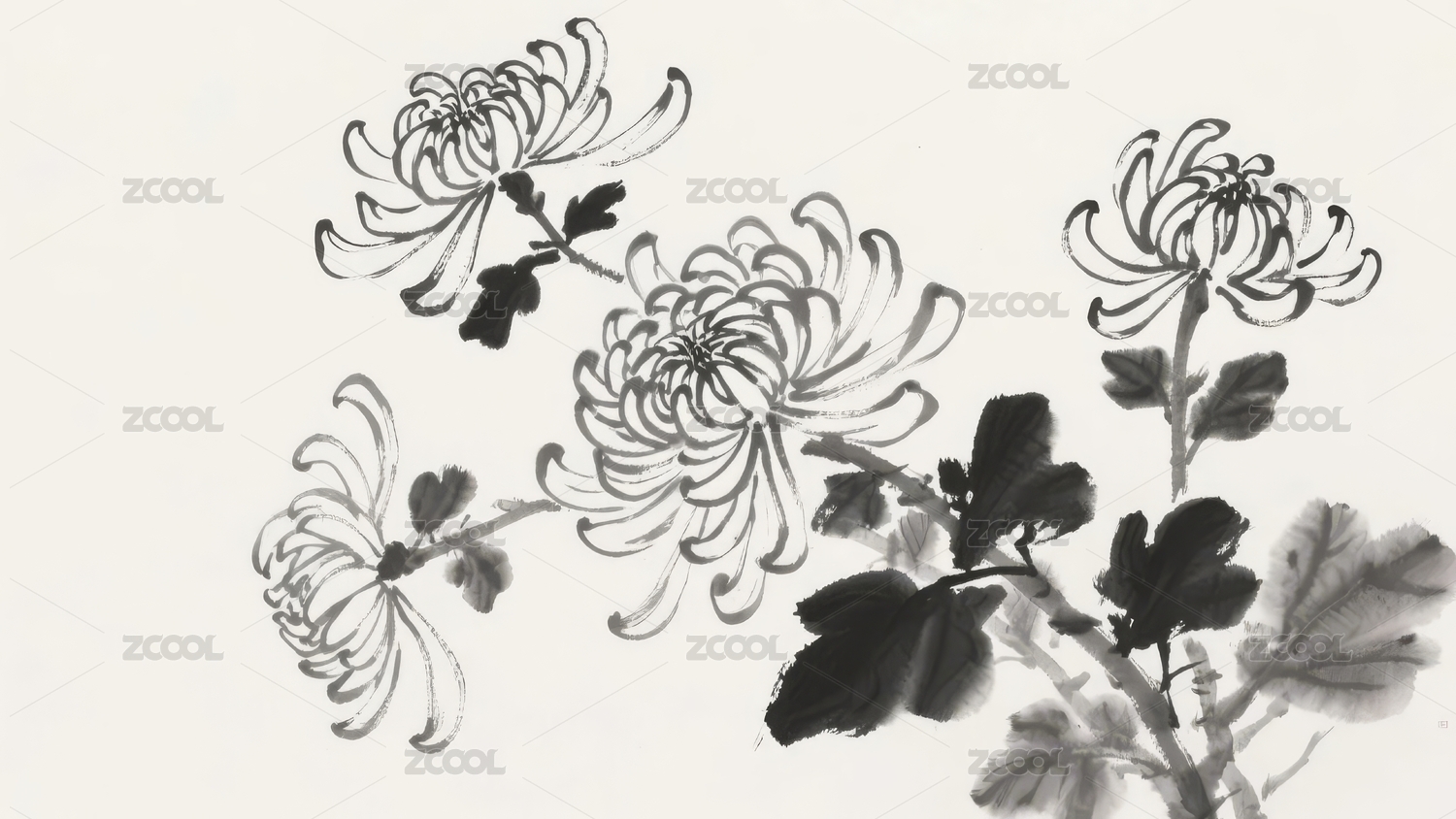 中国水墨画风格菊花