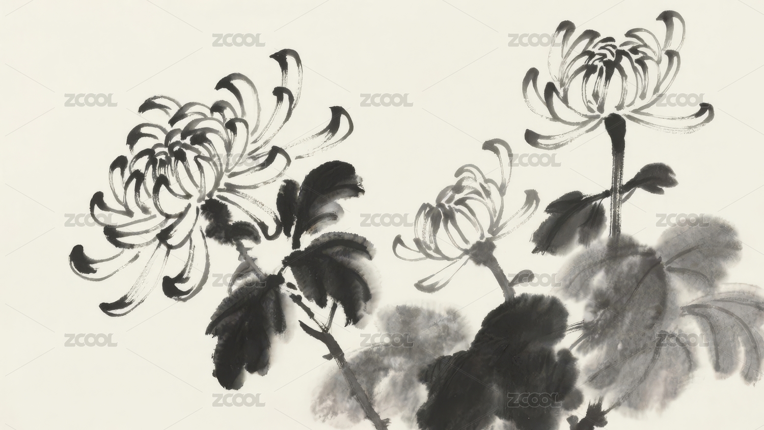 水墨菊花中式装饰场景