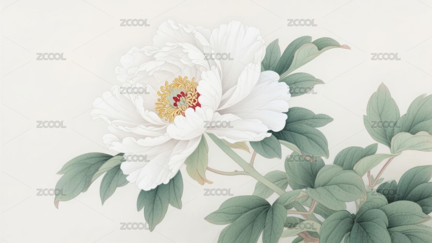新中式玉枝牡丹花金箔岩彩水彩水墨画