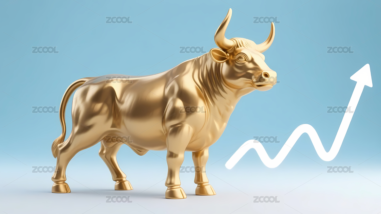金色牛雕像上升箭头景