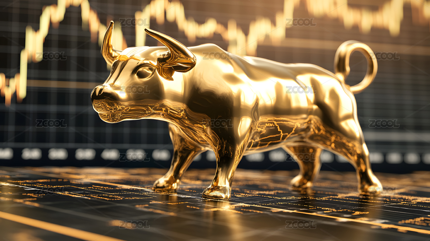 金色的公牛和柱状图组合