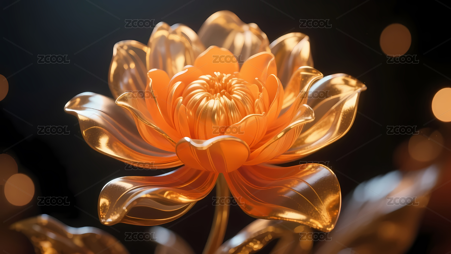 金色花卉特写3d抽象花朵PPT主视觉背景
