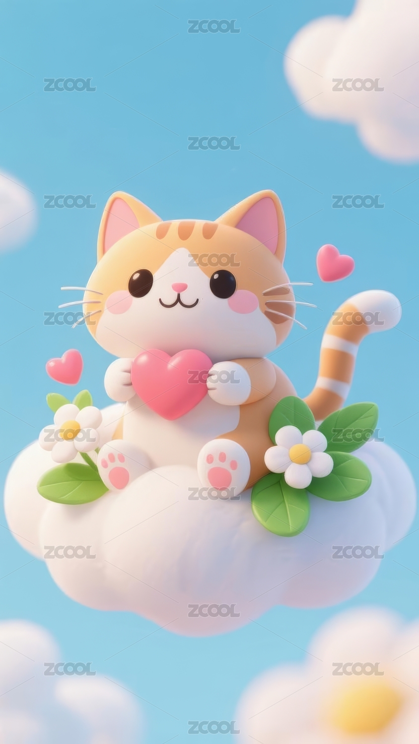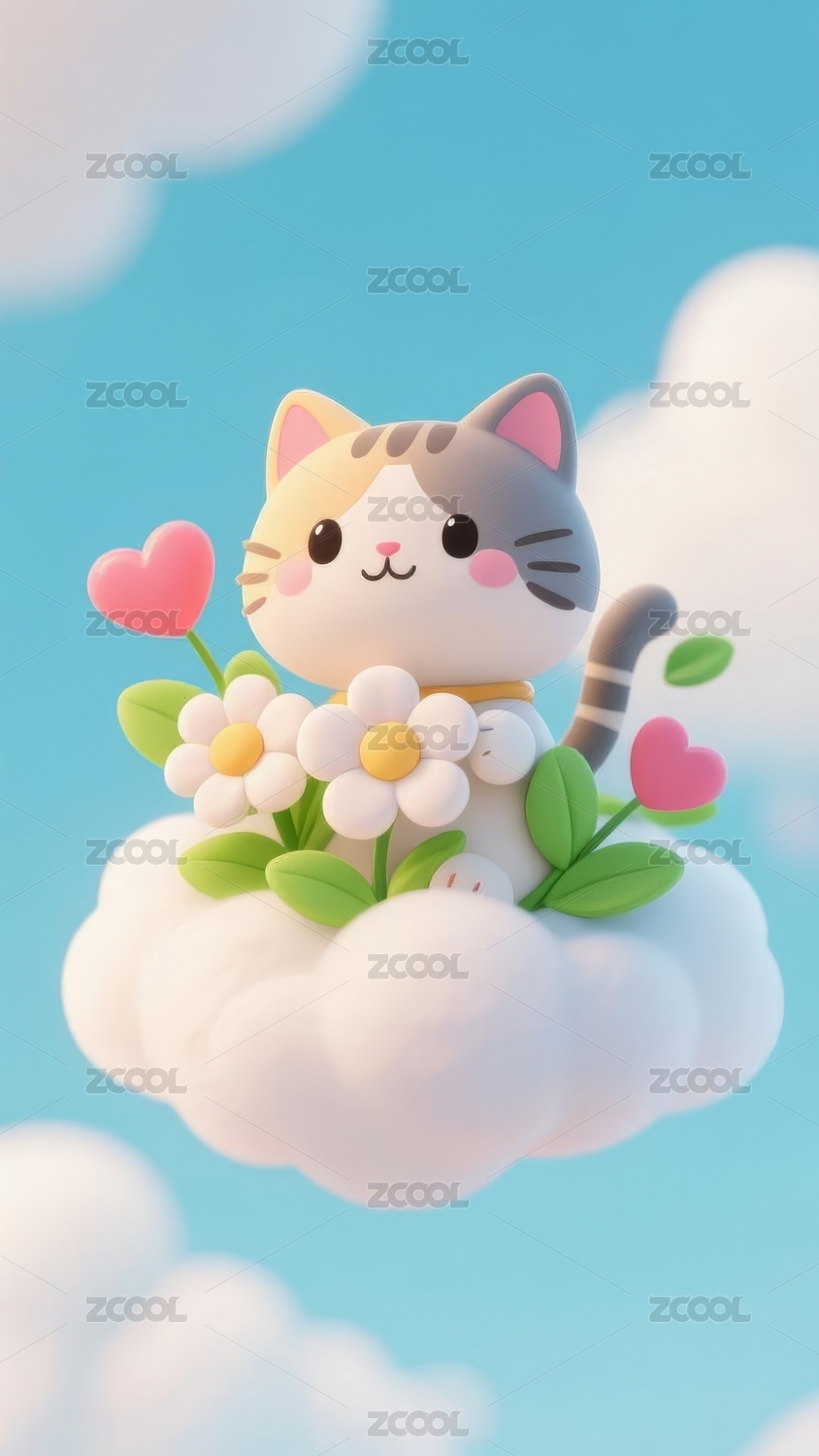 主视觉,商业,壁纸,云朵,猫咪,梦幻风,萌趣,场景,粉色,可爱