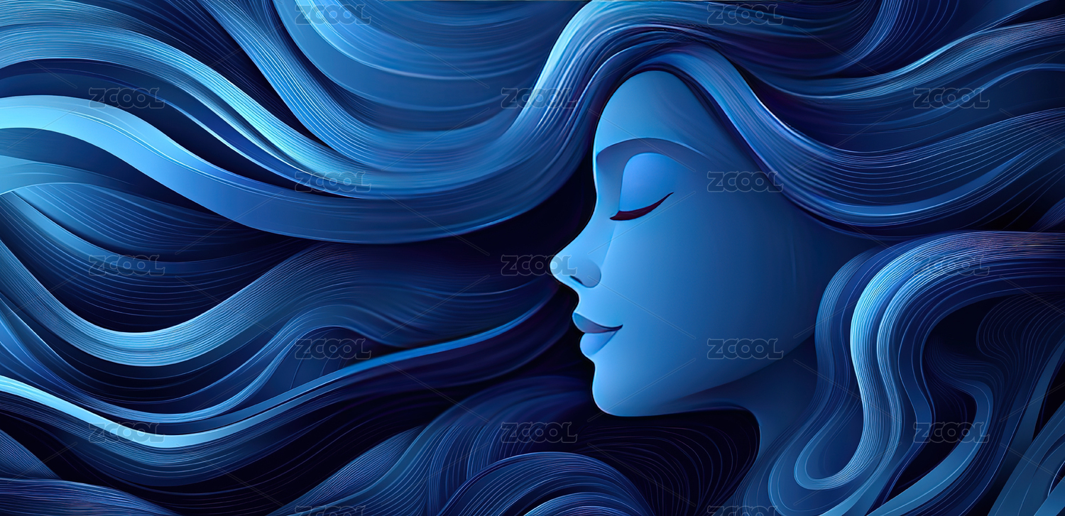 蓝色美人艺术插画