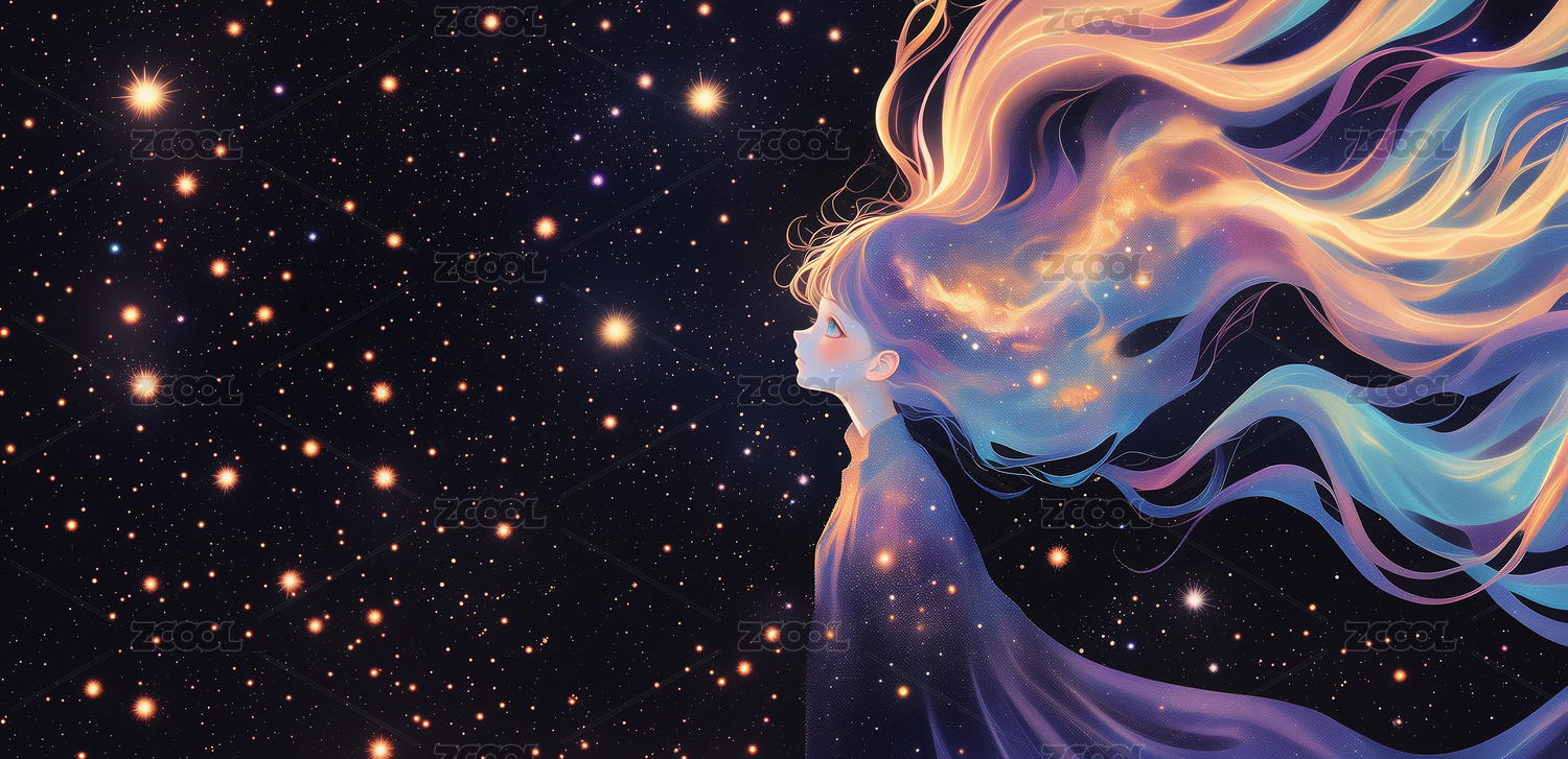 梦幻女子与星河长发