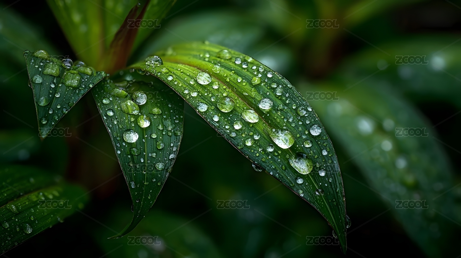 绿叶上的水珠特写