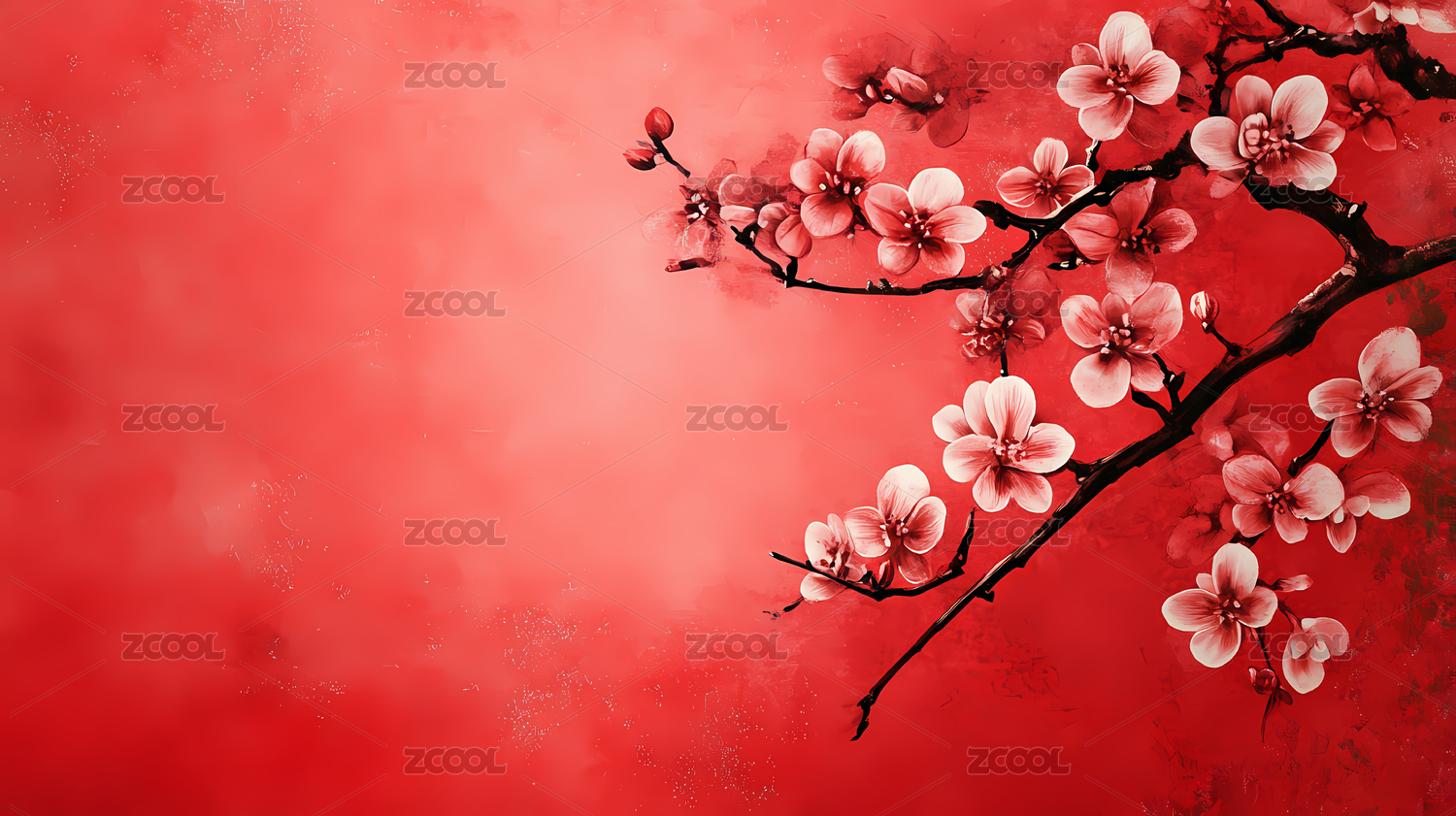 春节风红色的梅花背景墙