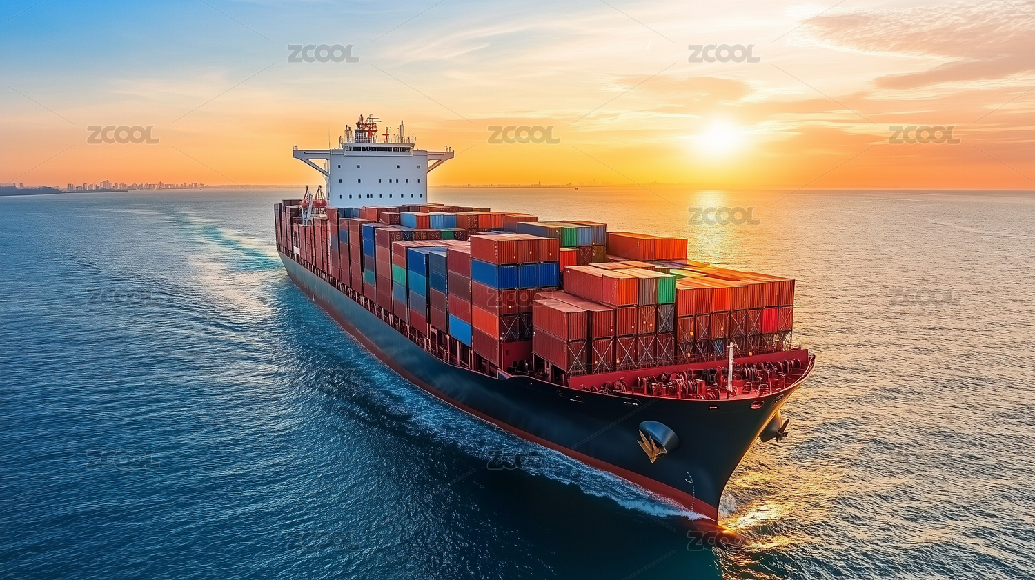 海运货船夕阳