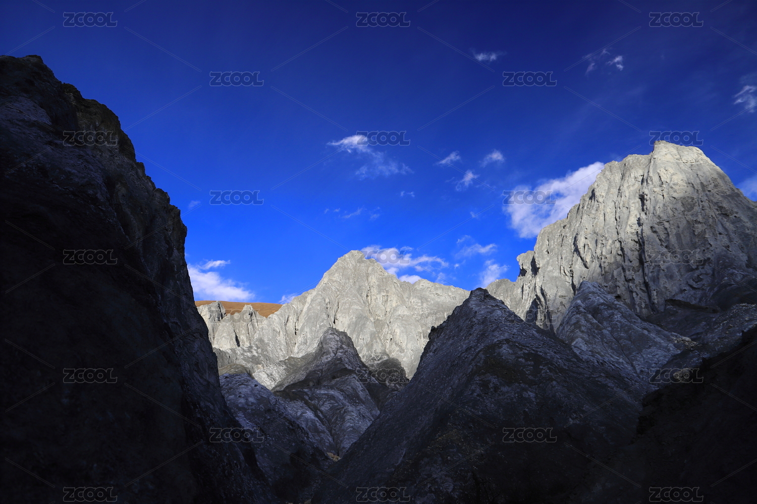 蓝天白云下的玉龙雪山