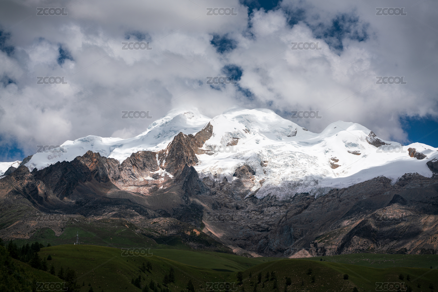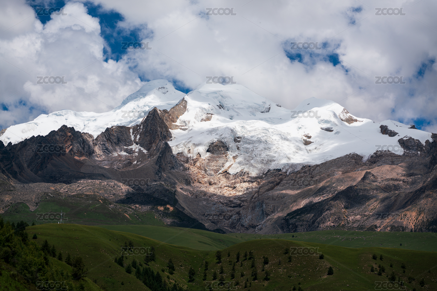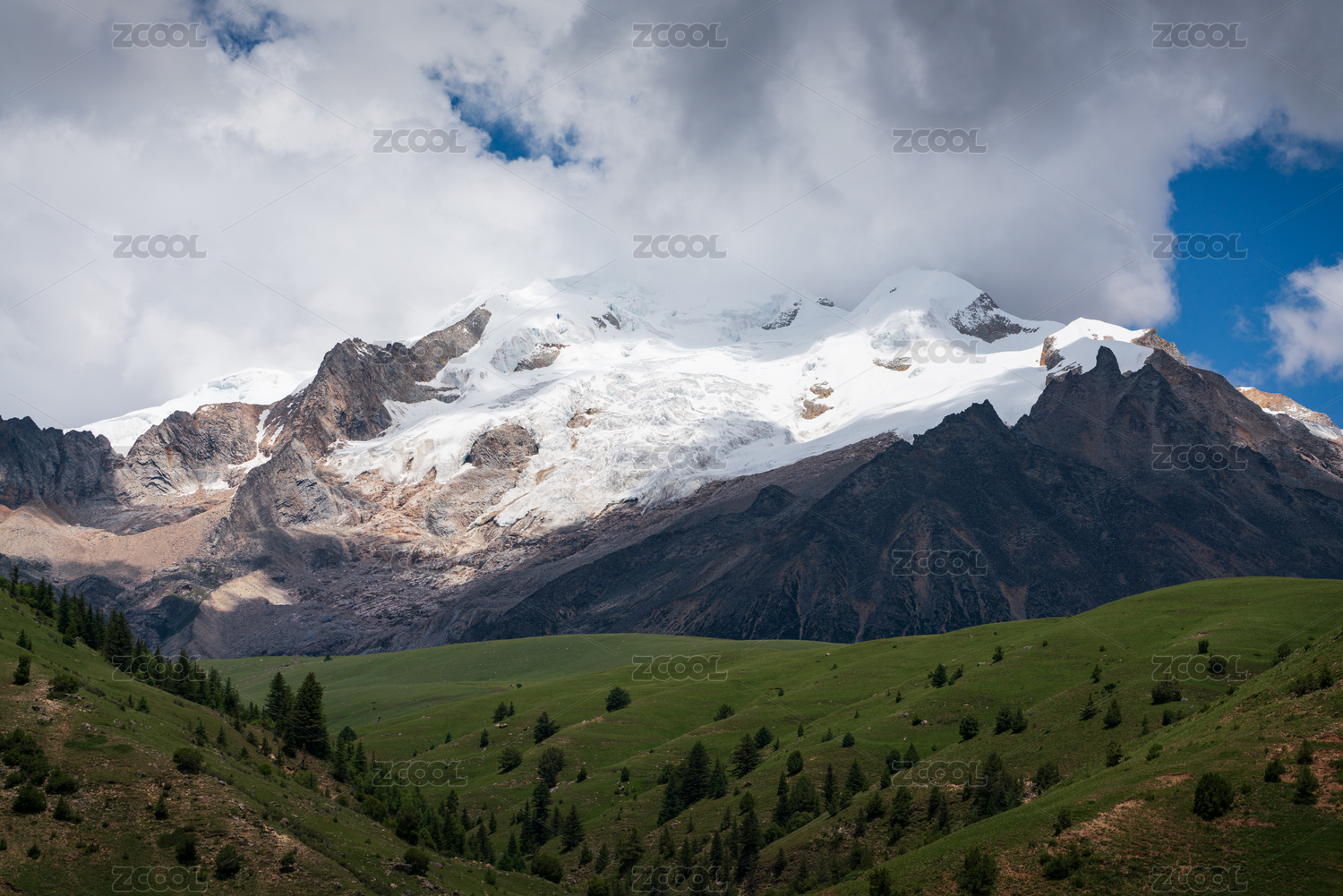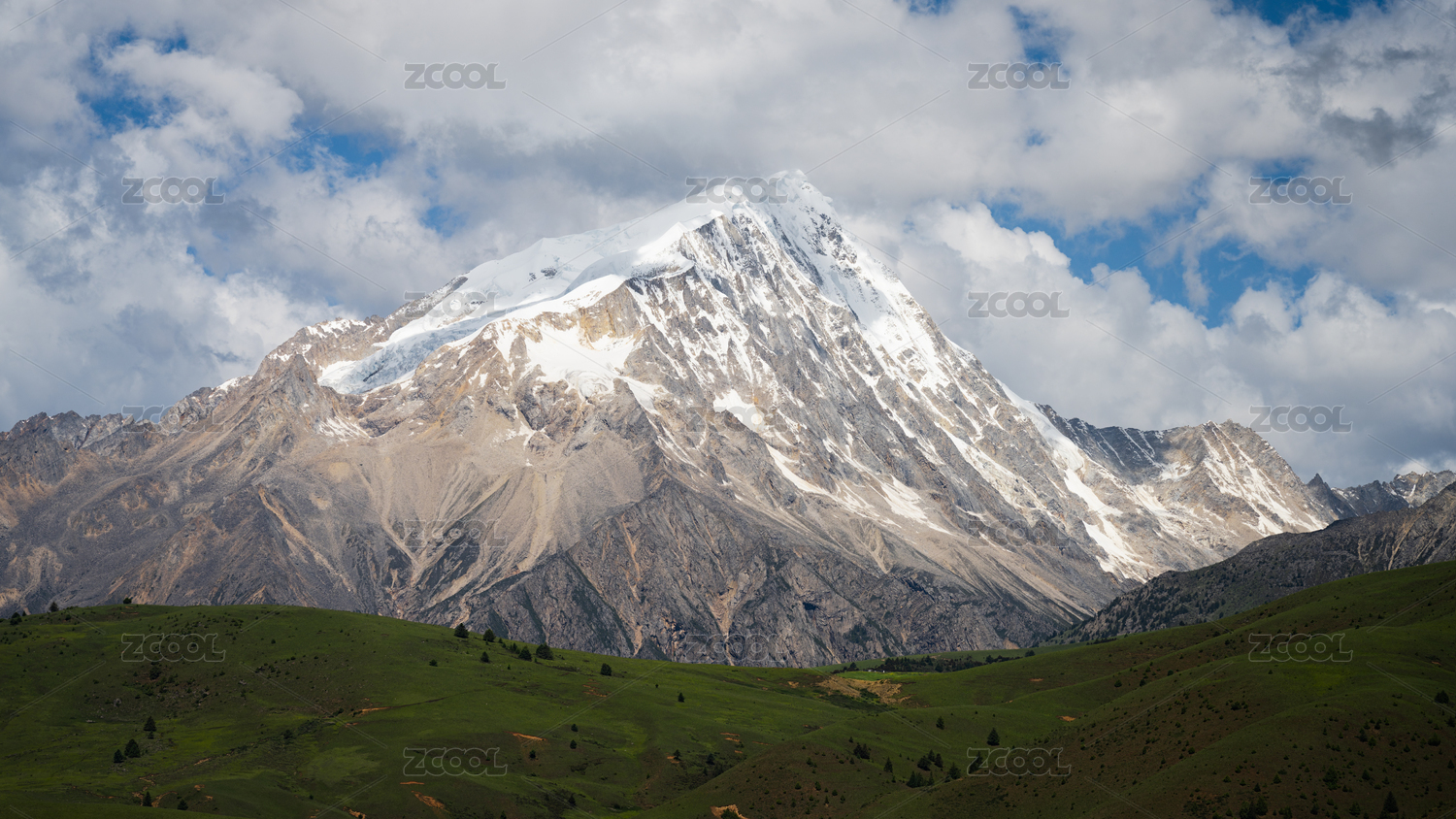 四川西部甘孜新都桥镇鱼子西景区远望雪山