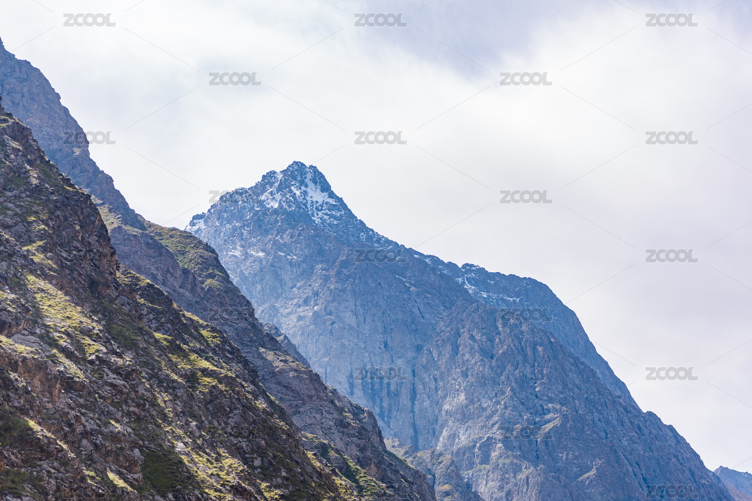 中国新疆独库公路上的天山,怪石嶙峋的山体