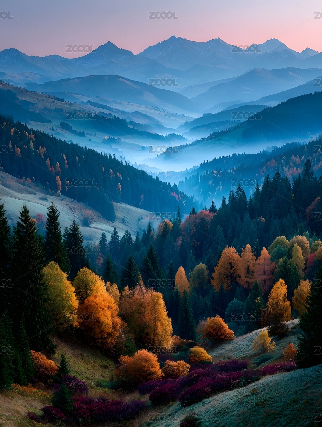 天空,地平线,山脉,树木,蓝色,森林,风景,自然,黄色,色彩
