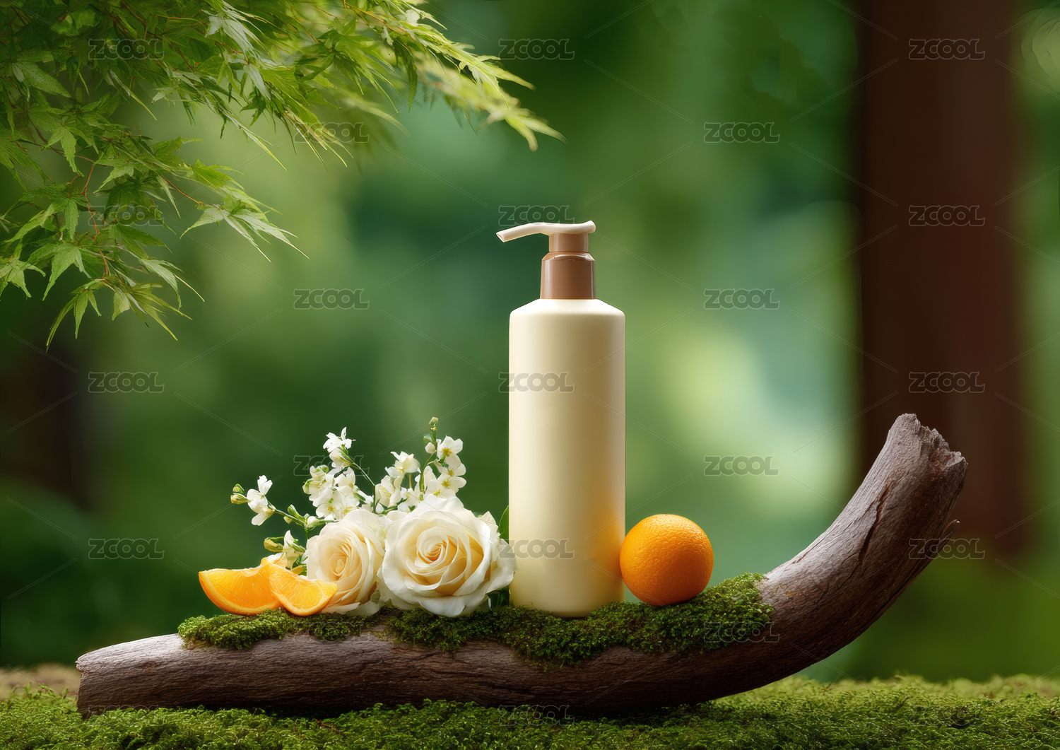 白色瓶身与绿叶清新自然