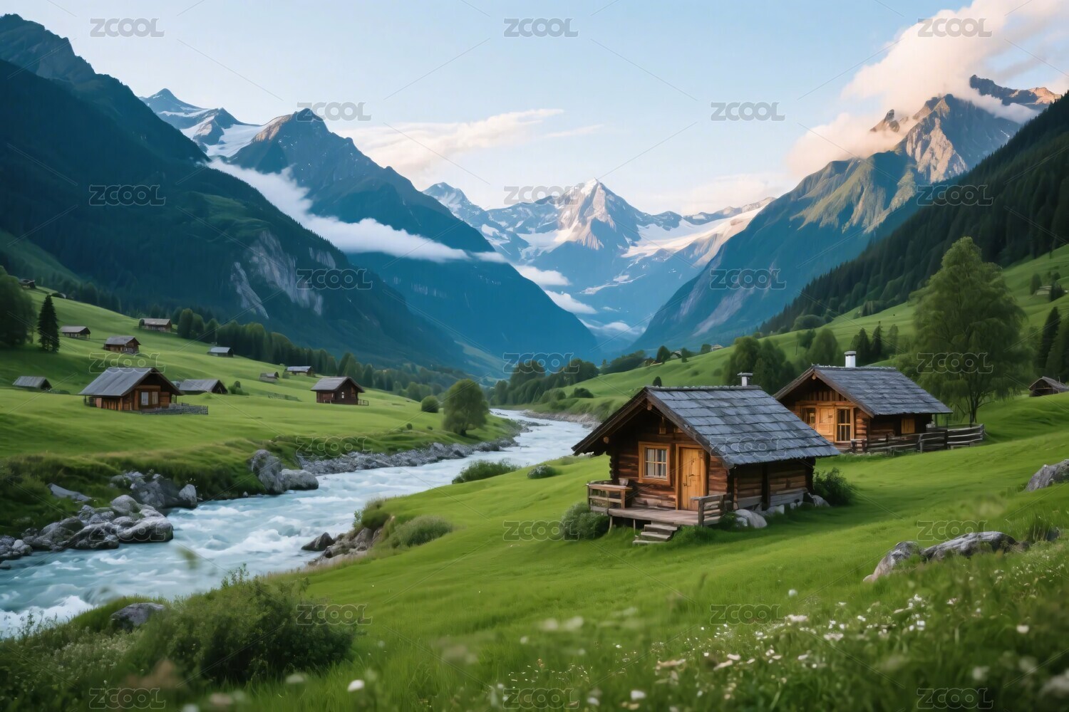 阿尔卑斯山脚下木屋田园
