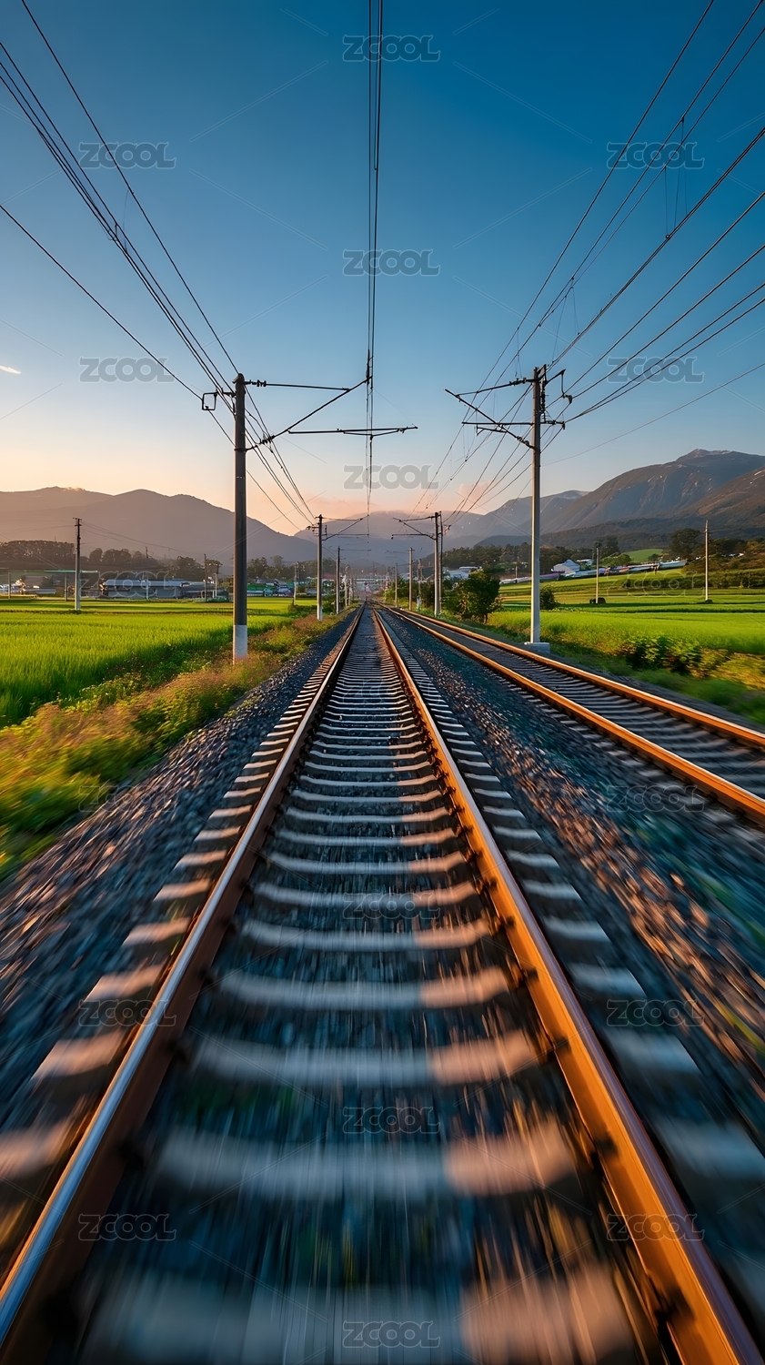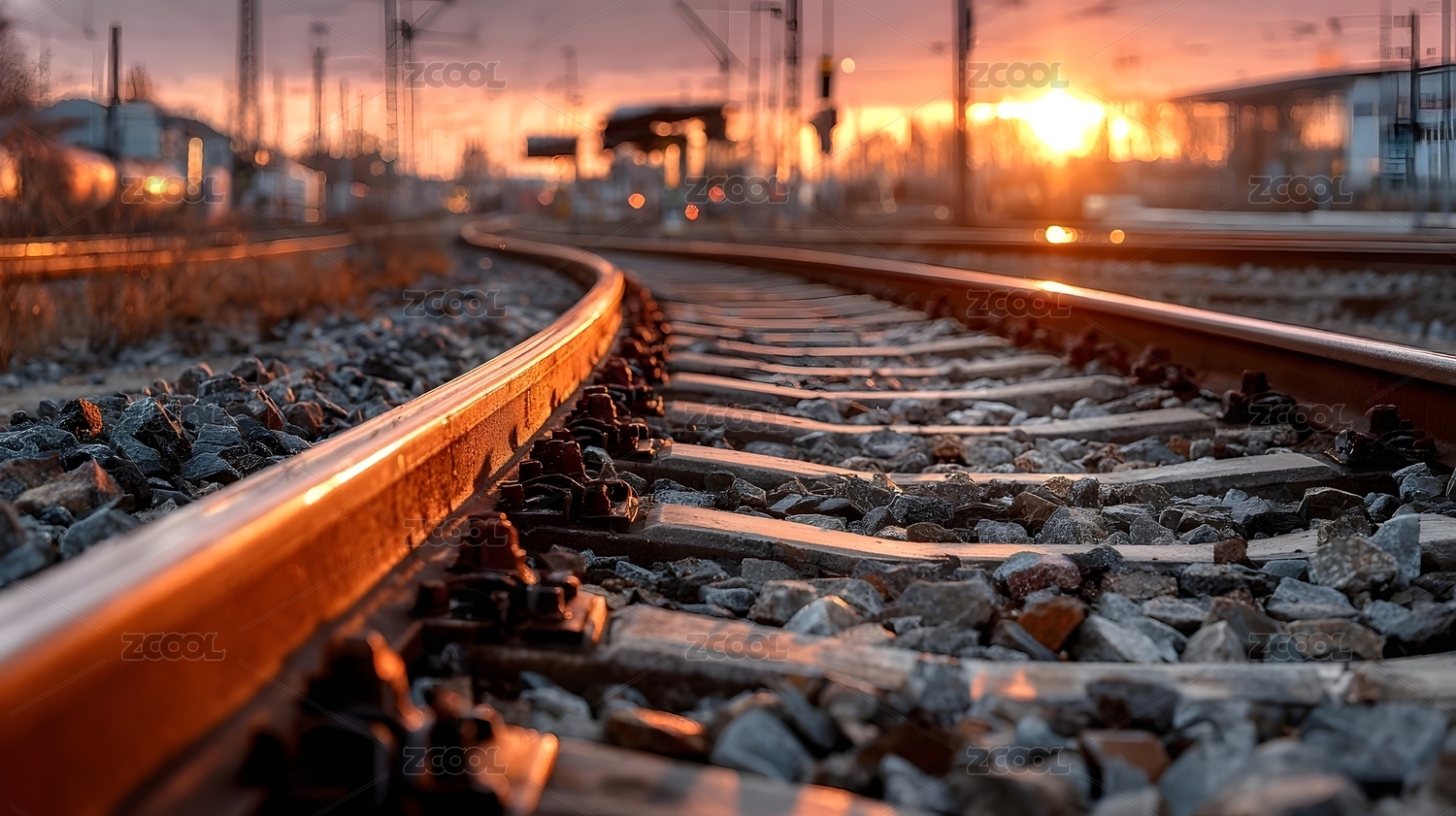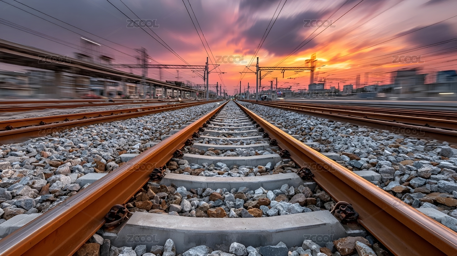 日出,火车货运站,铁轨上快速行驶的火车,贸易往来