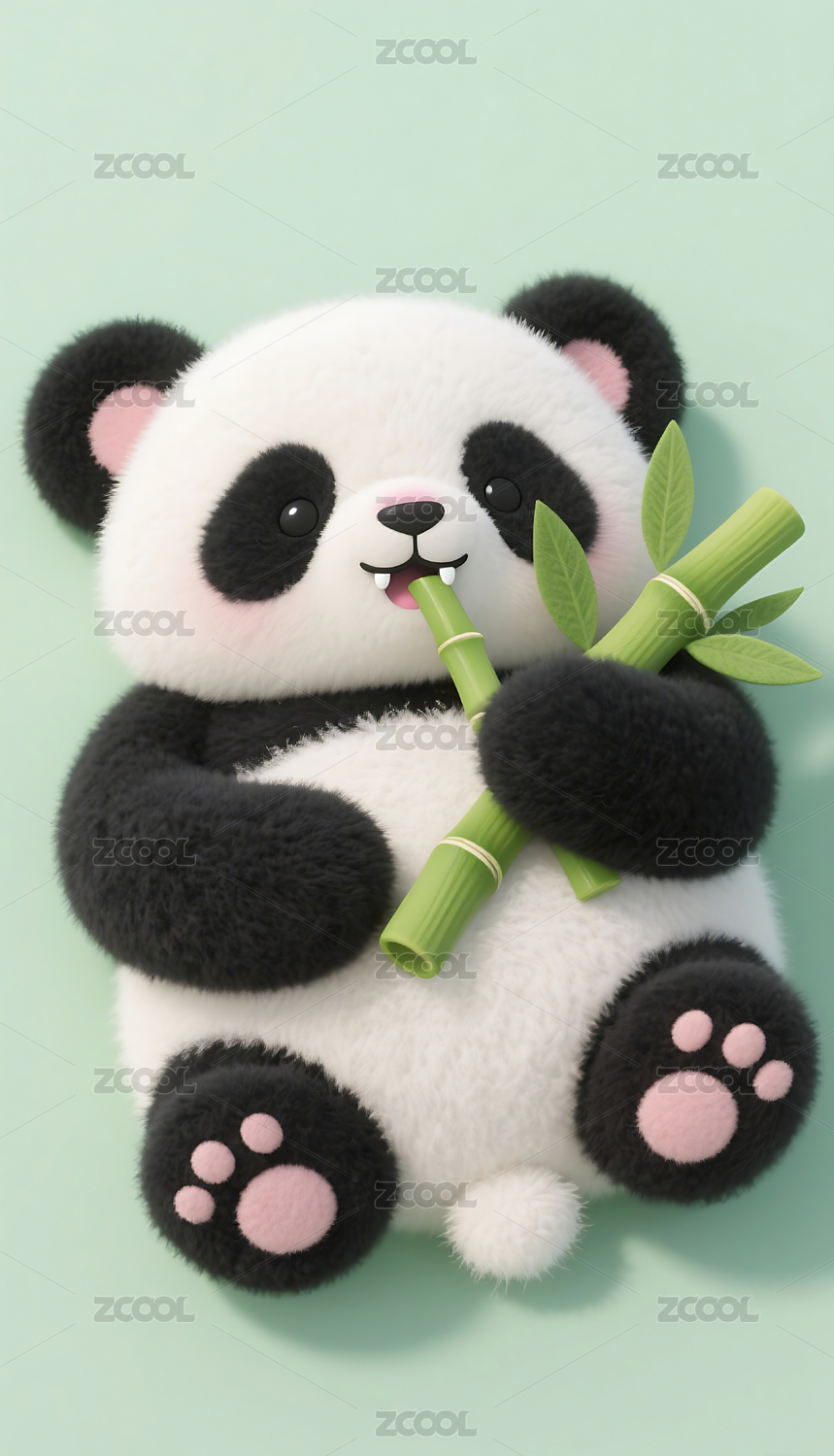 3D建模羊毛毡毛绒绒质感大熊猫吃竹子模型