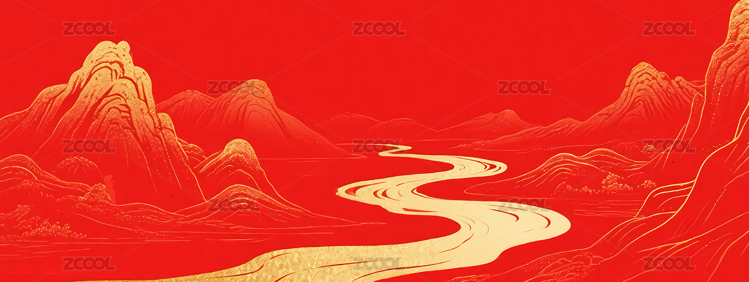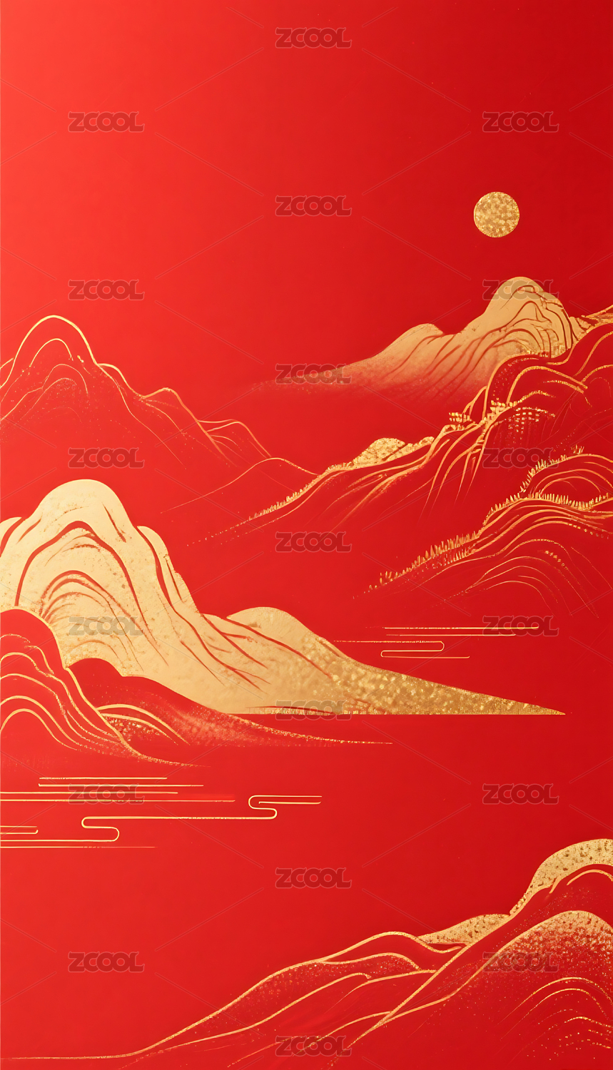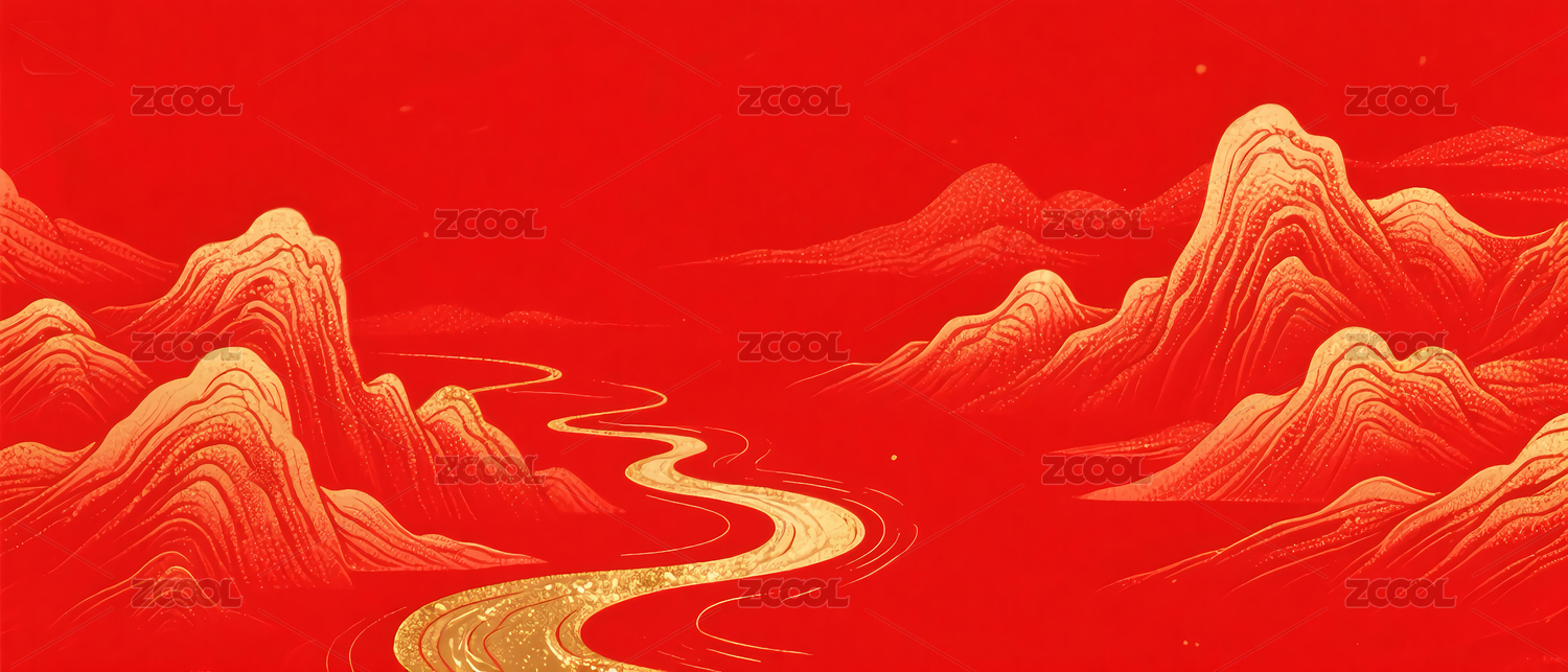 海报,海报背景,背景,红色背景,中国风,国风,金箔,古风,山水画,山峦