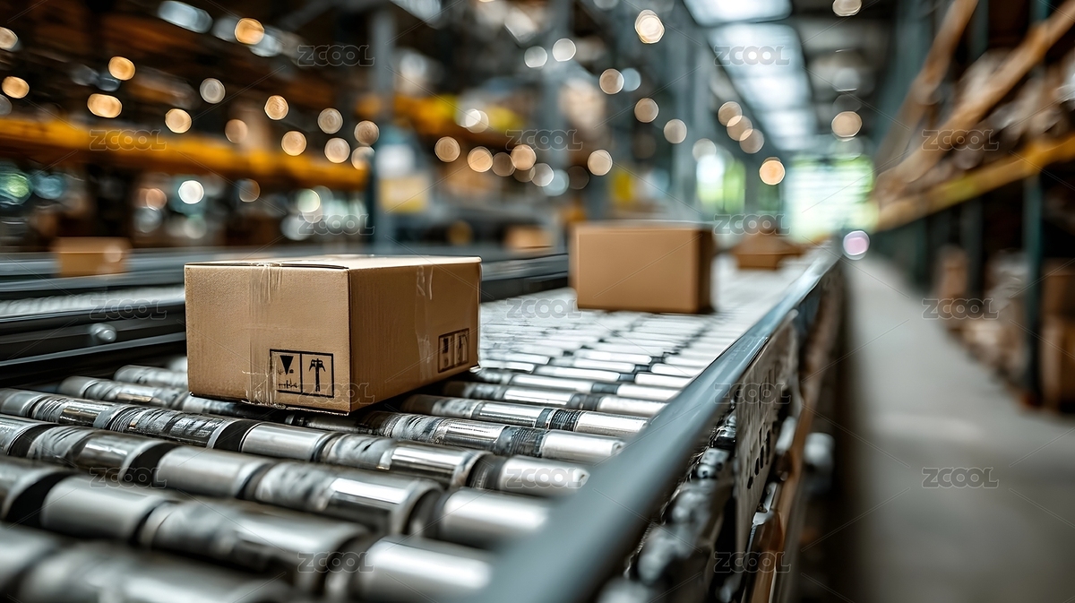 包裹纸箱包装在仓库传送带上,电子商务产品