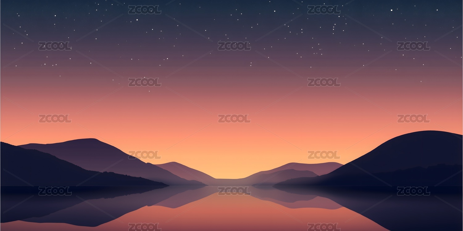 落日余晖山川倒影星光