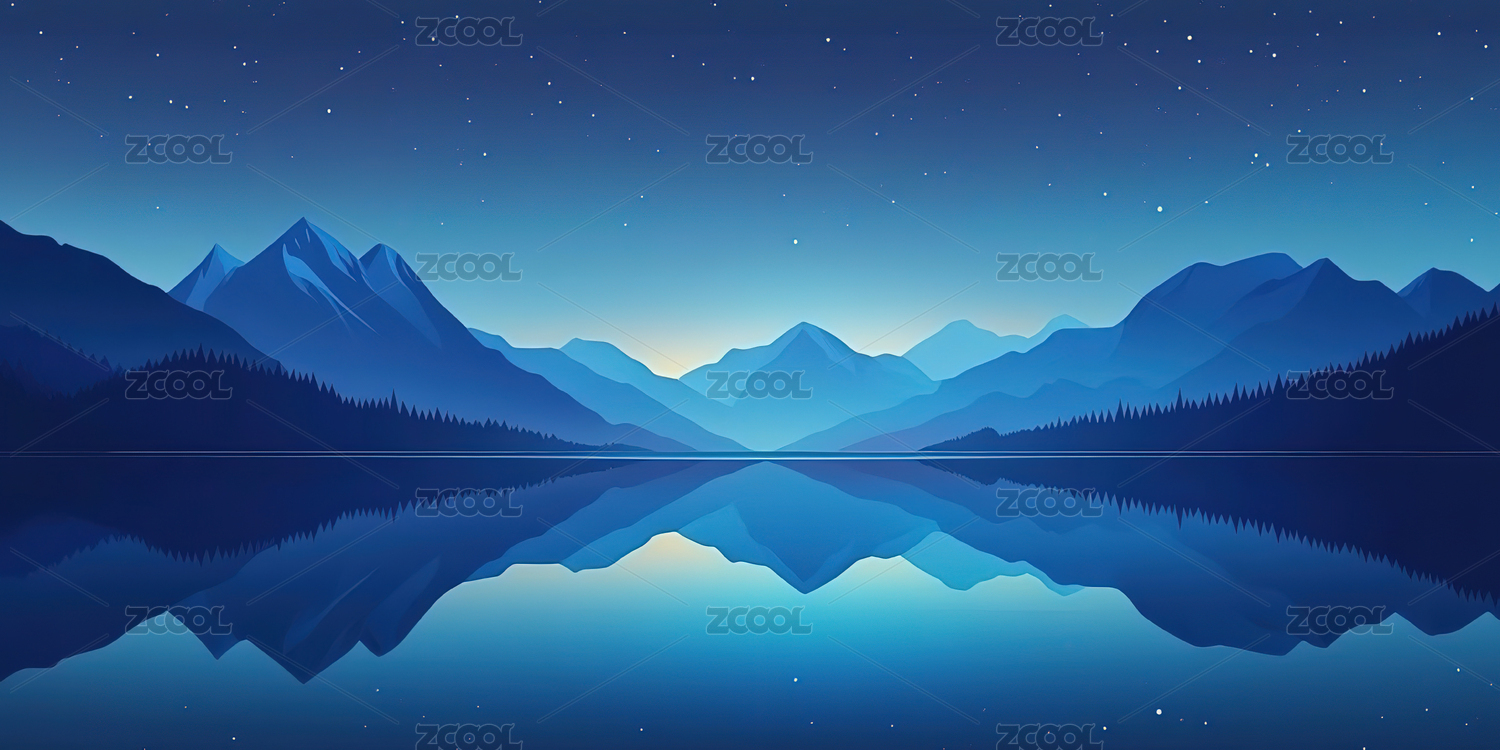 月夜静湖映山影插画