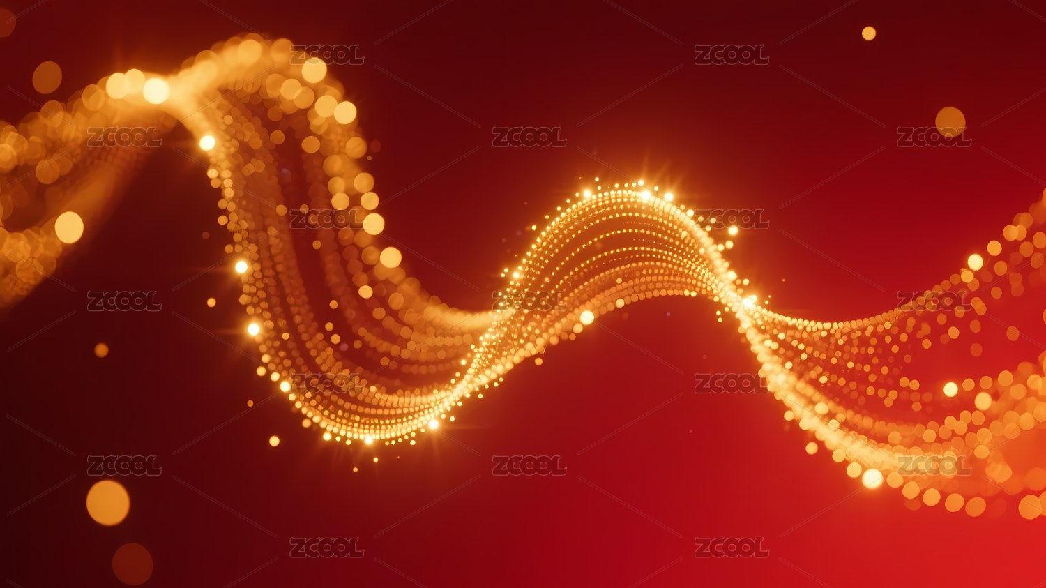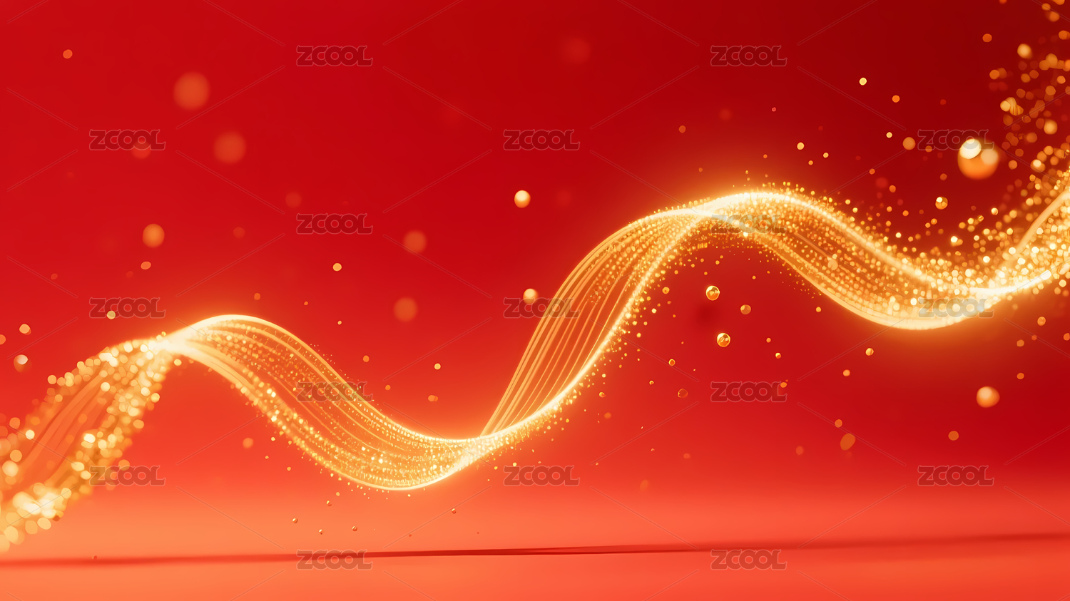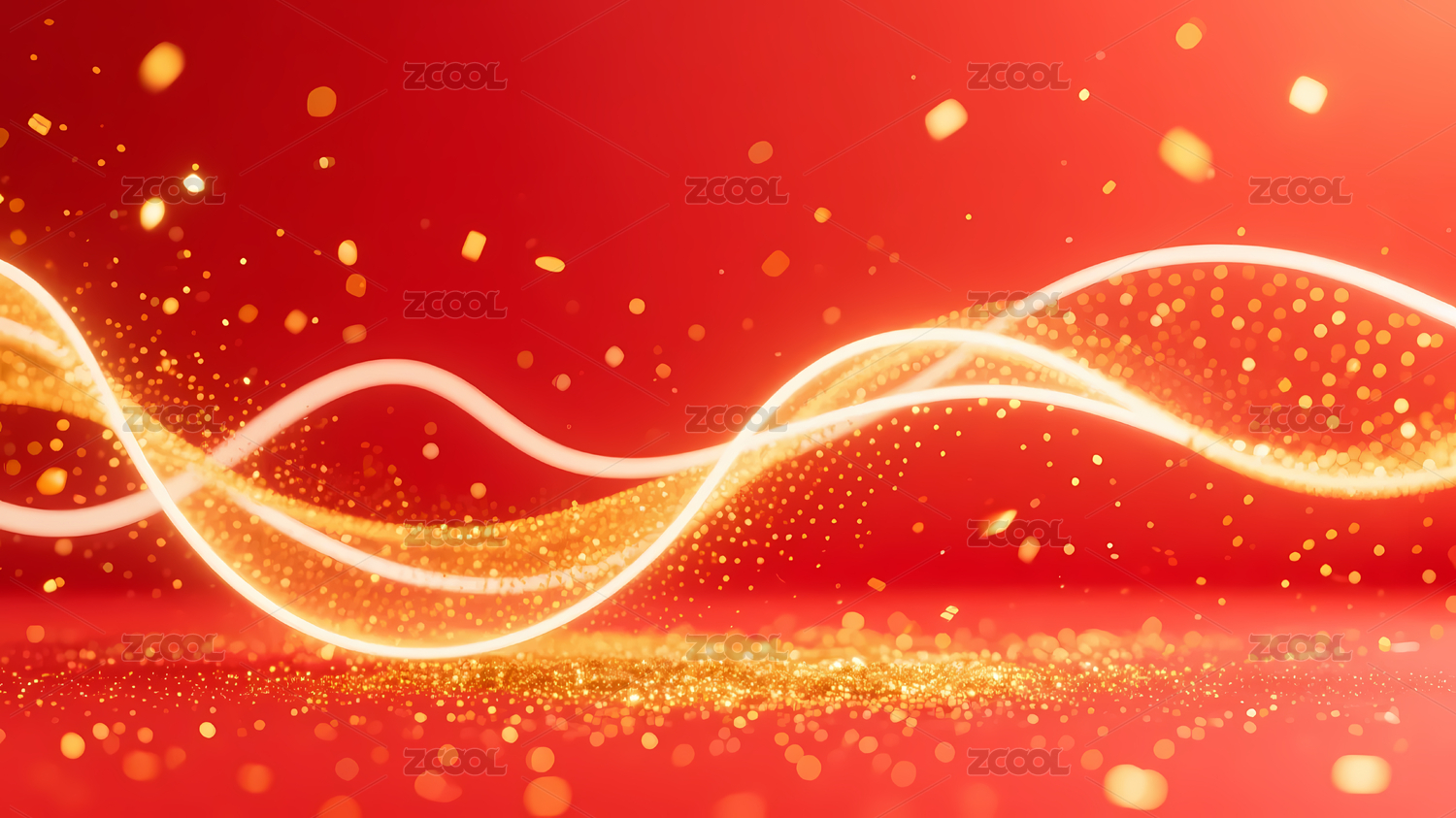 金色粒子波浪线红色背景