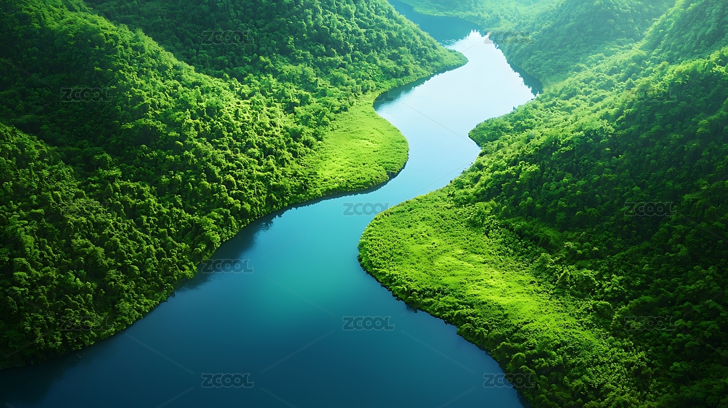 森林河流鸟瞰图主题