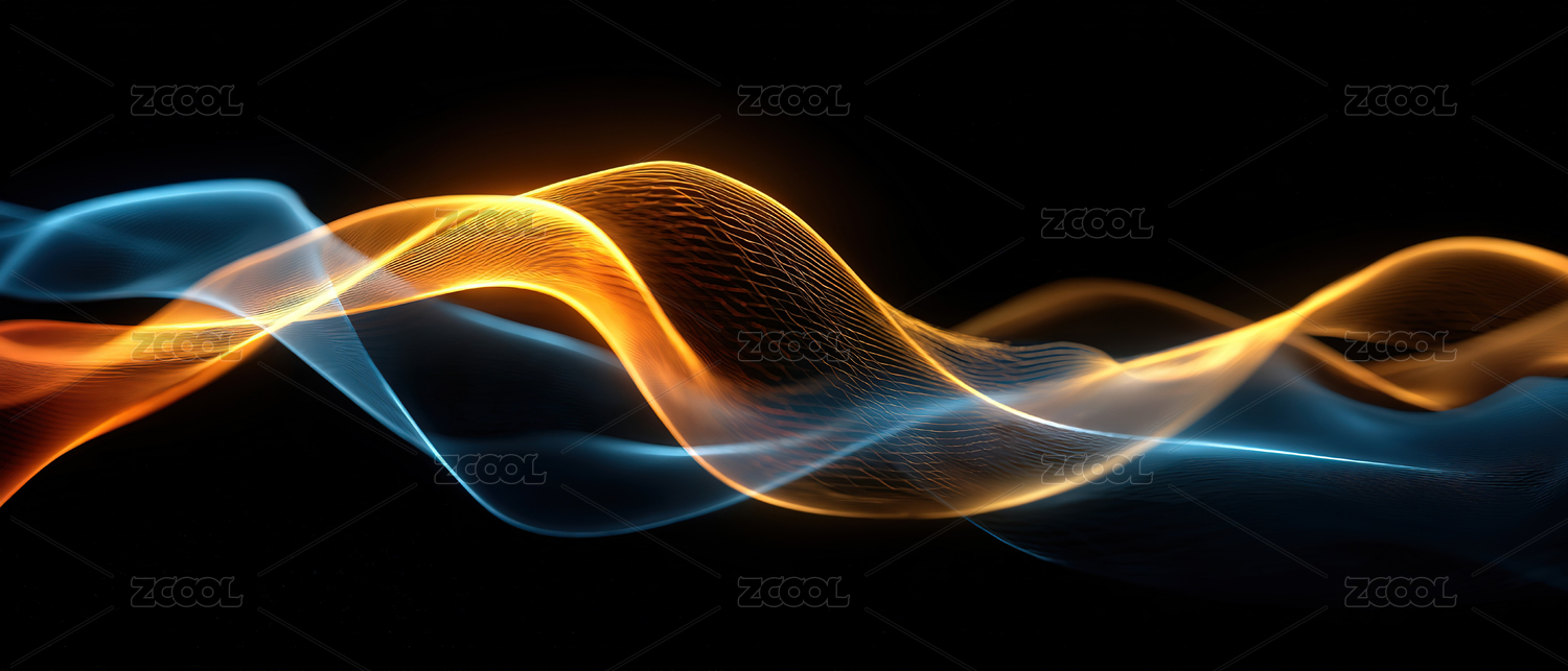 蓝色橙色光线缠绕黑色,背景