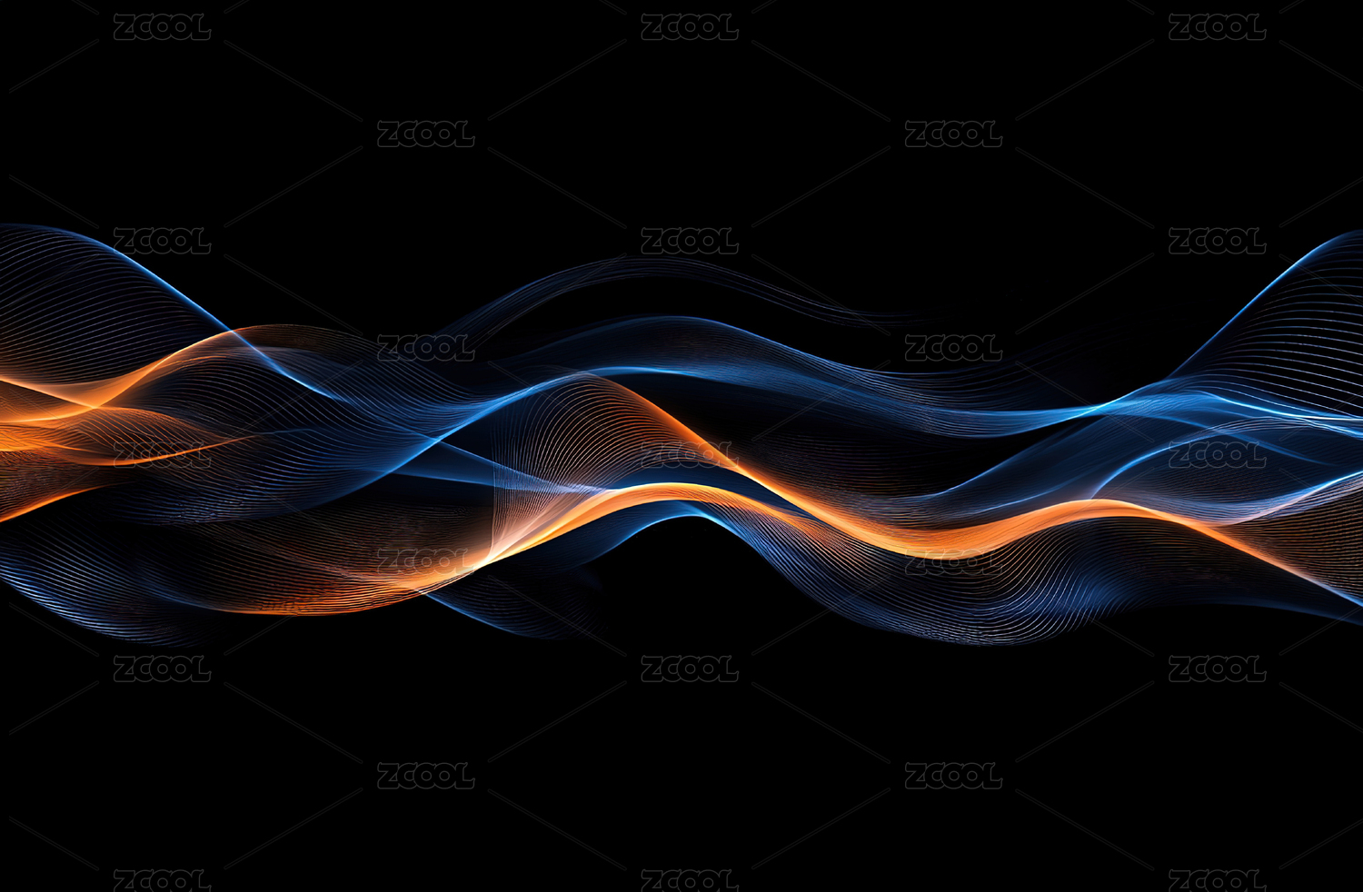蓝橙流光曲线抽象背景图