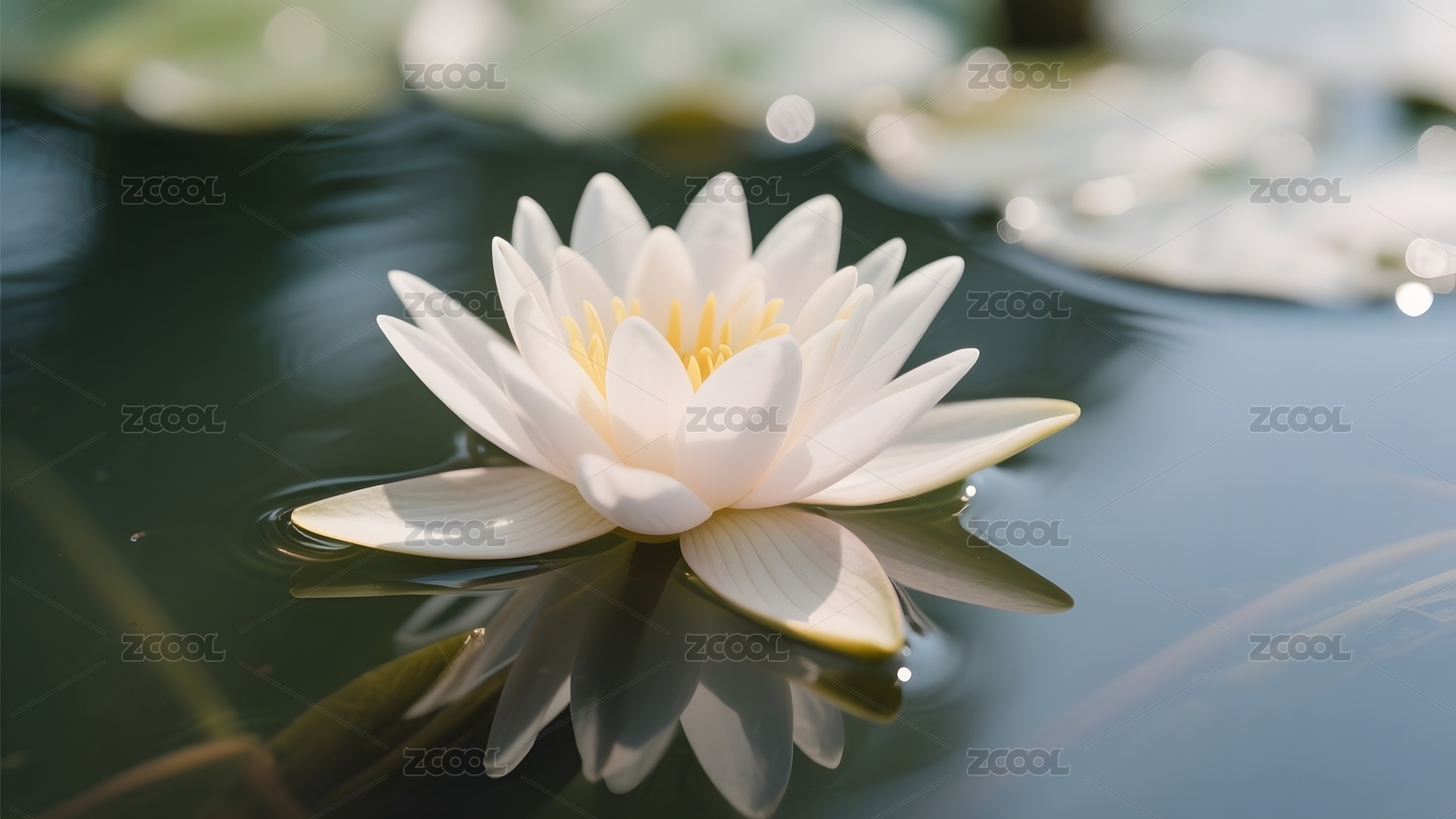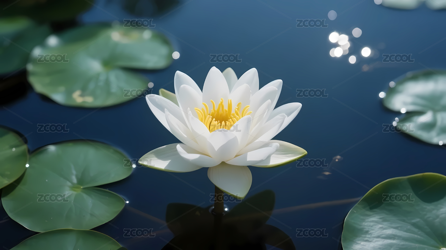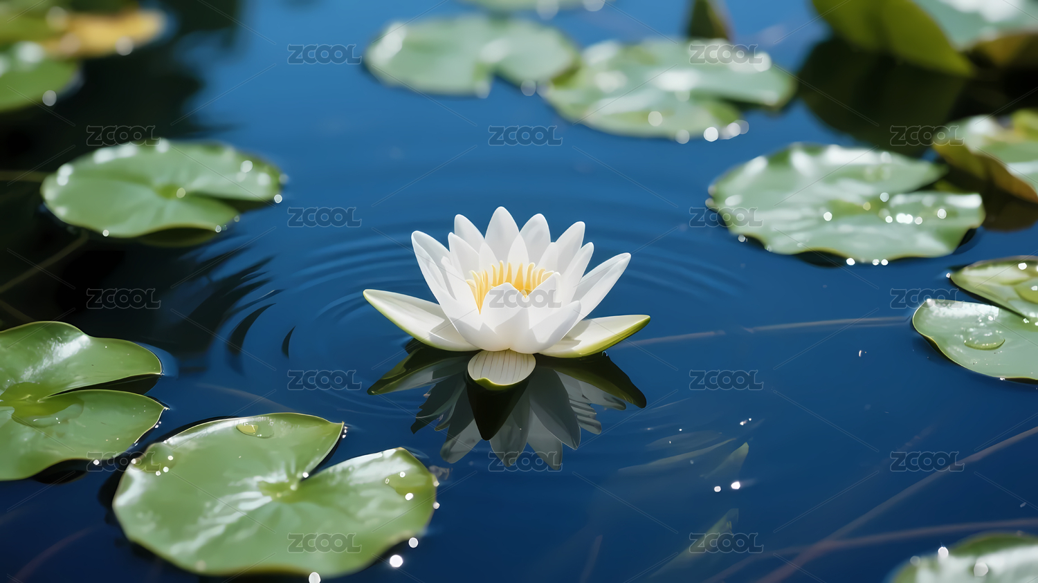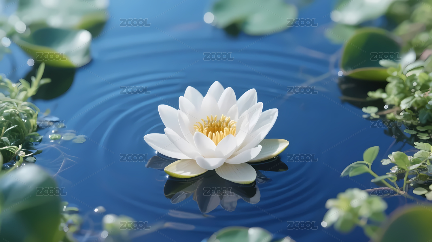 蓝色,白色,花瓣,黄色,植物,水面,荷叶,影像,莲花,清澈
