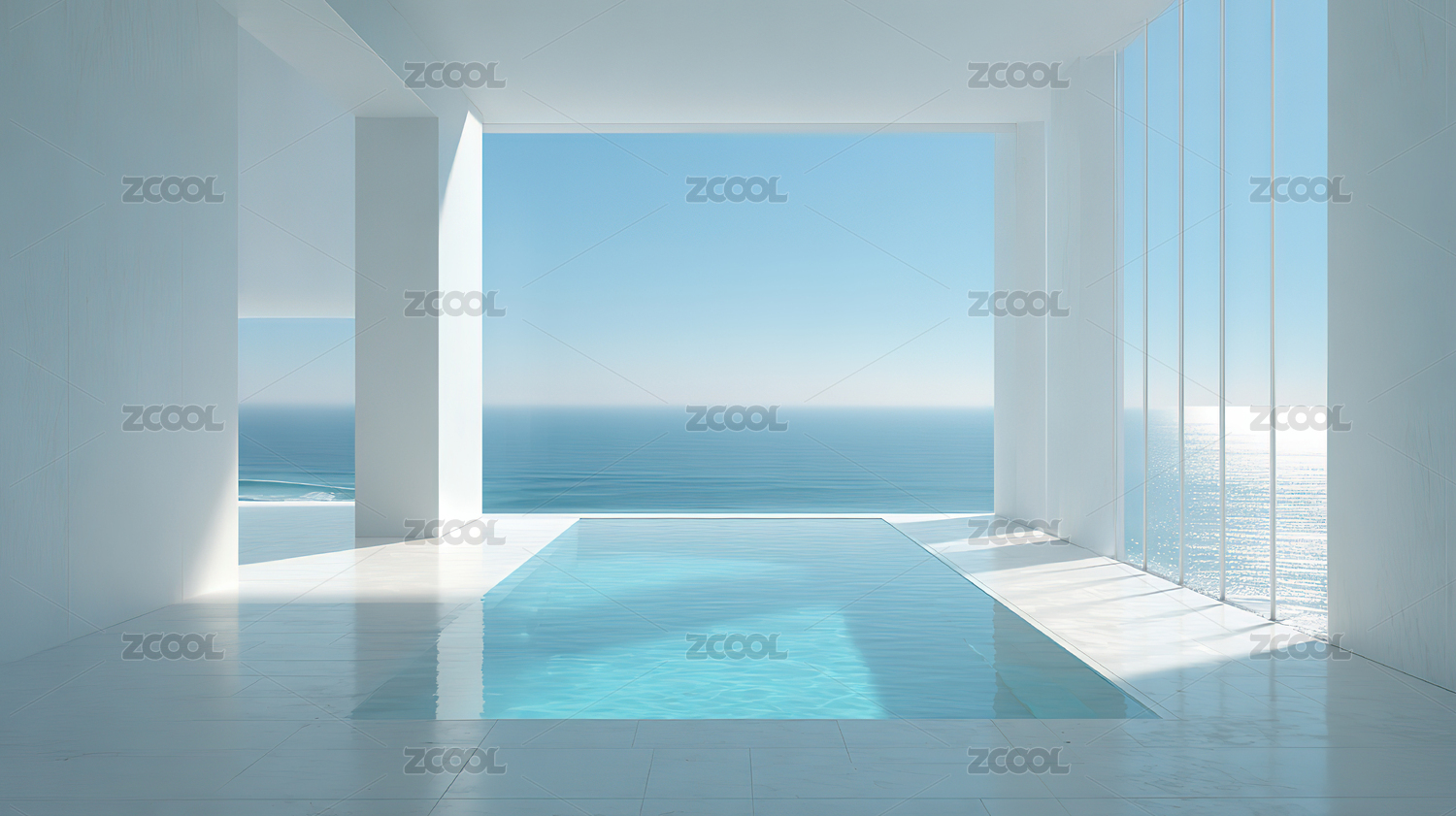 现代建筑室内海景一览无余