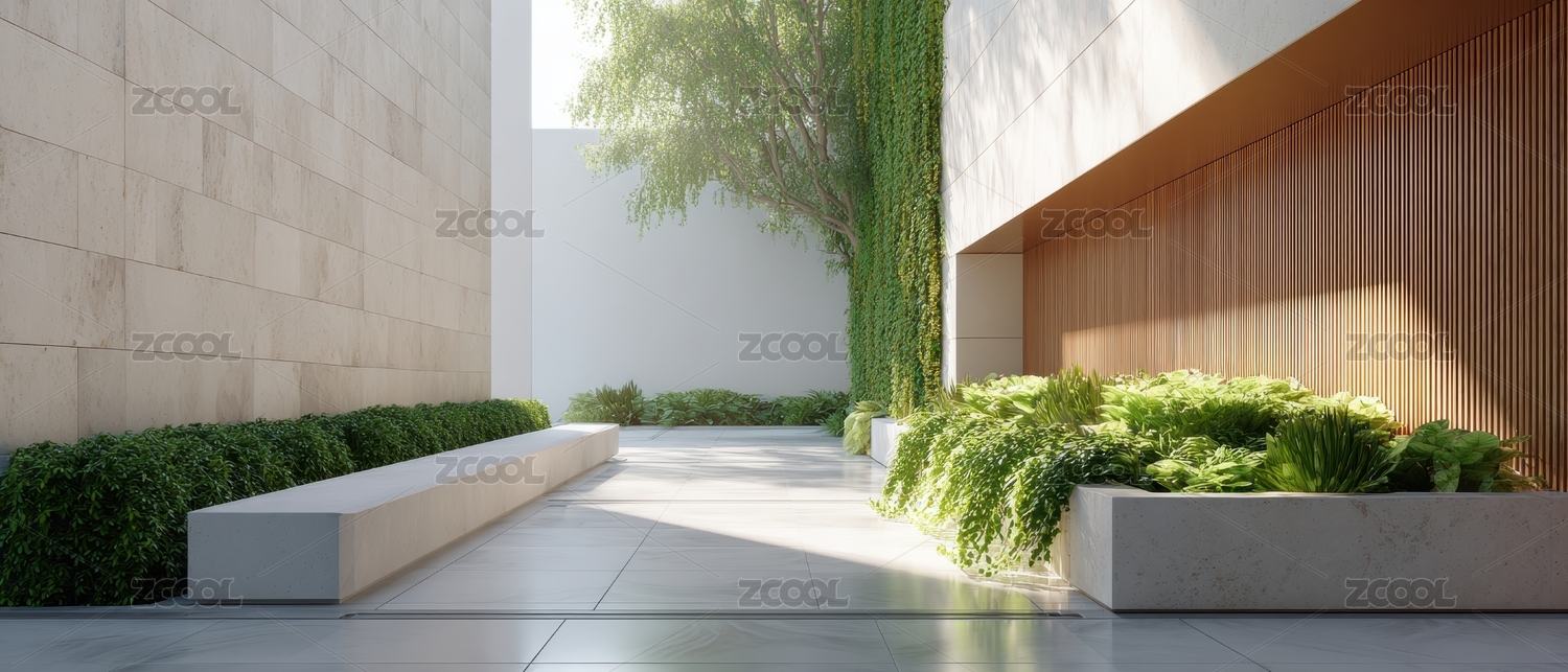 背景,现代,墙面,绿色,灌木,修剪,整齐,灰色,混凝土,地面