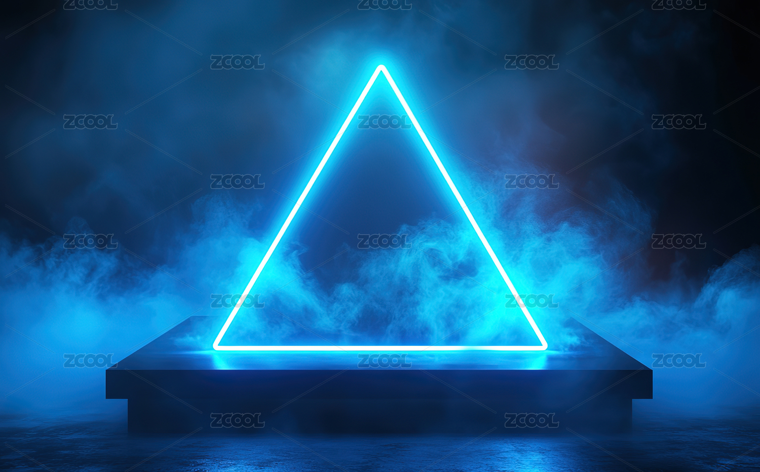 蓝色霓虹三角形在黑暗中的反射