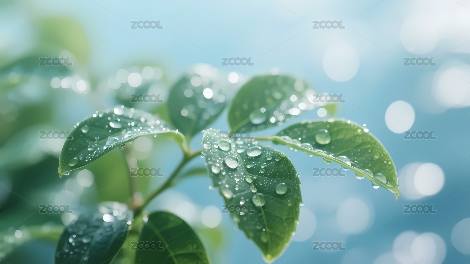 绿色,植物,水珠,光束,深蓝色,背景,清新,生机,光线,照射