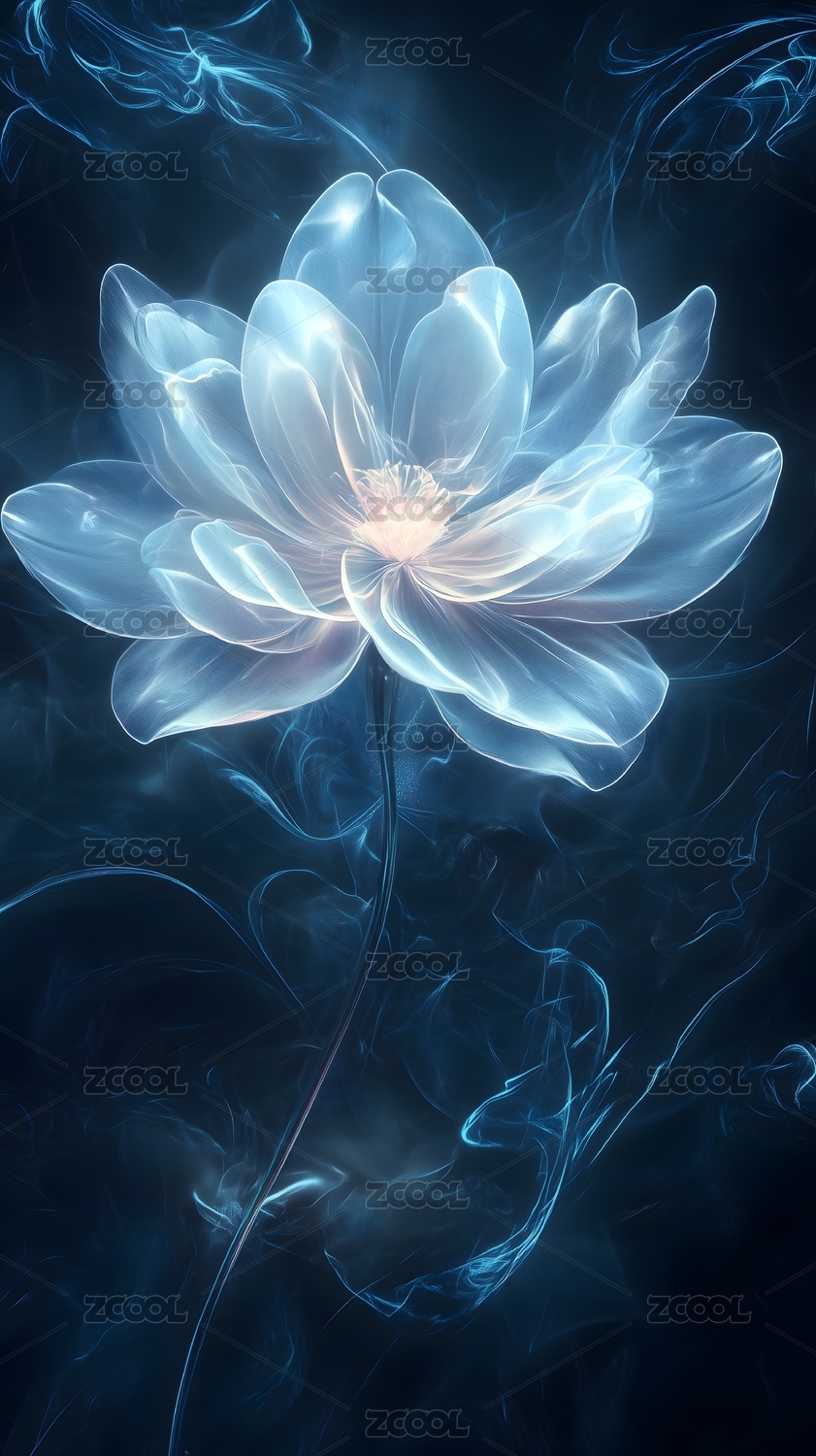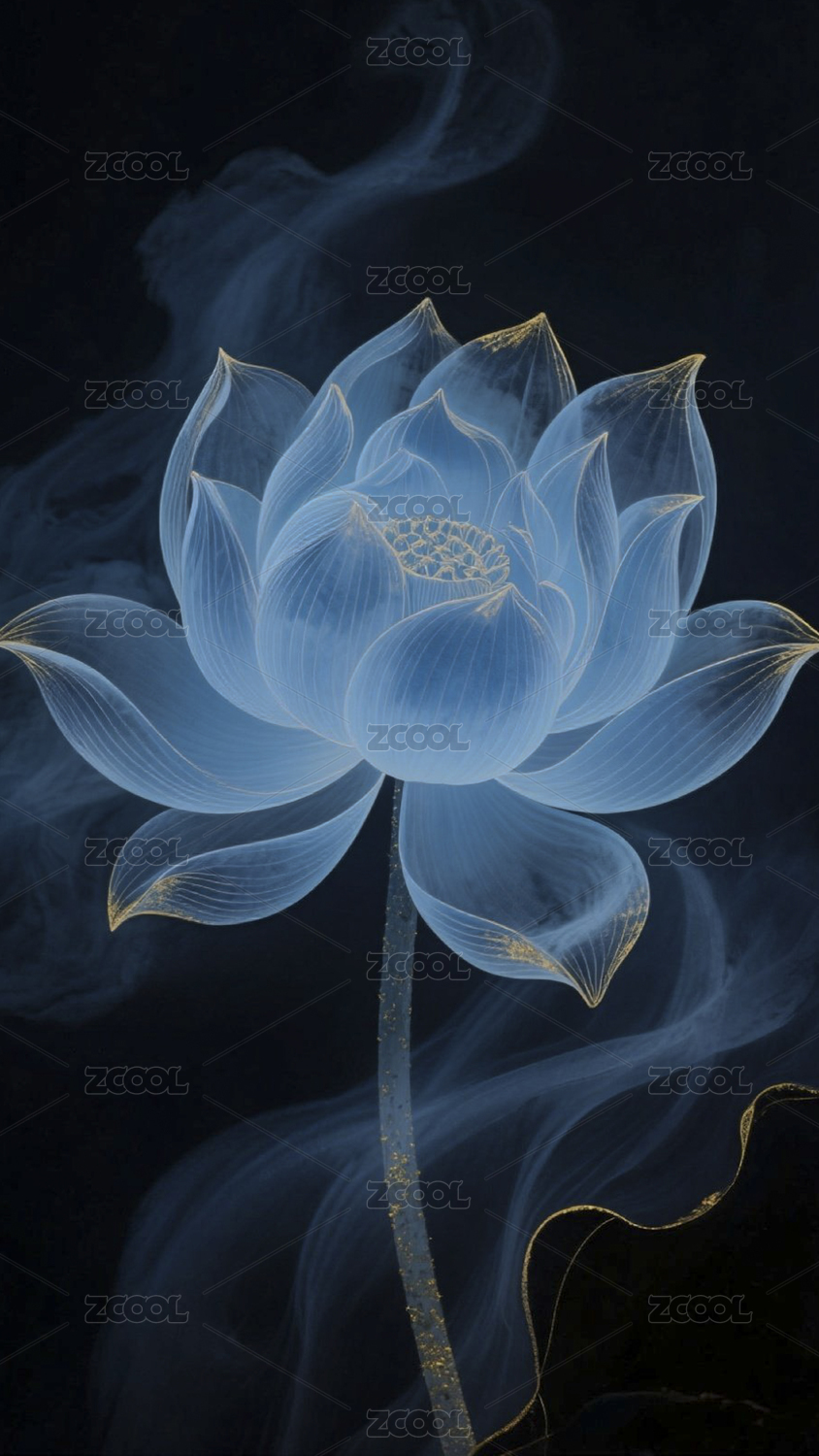 莲花,蓝色,水墨风,禅意,花卉,艺术,唯美,静谧,优雅,绽放