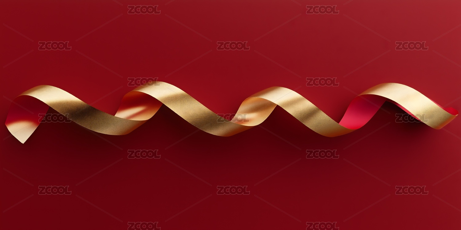 金色丝带与红色背景