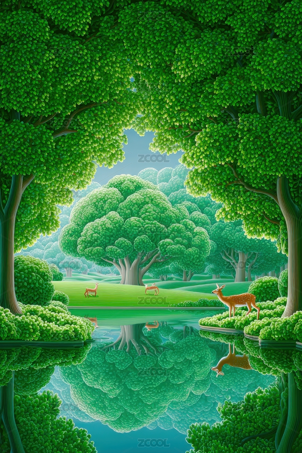 森林,湖泊,鹿,自然,宁静,美丽,风景,绿色,树木,平静