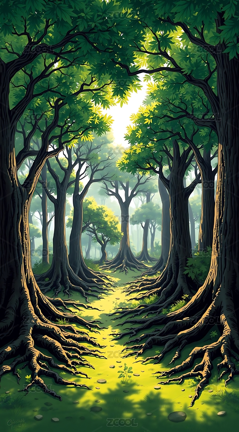 幽静森林的神秘光影 迷雾森林的静谧小径