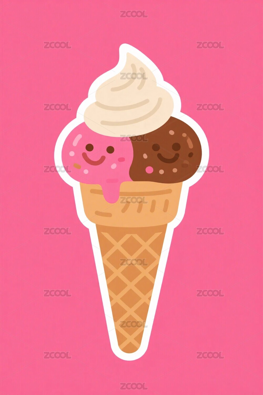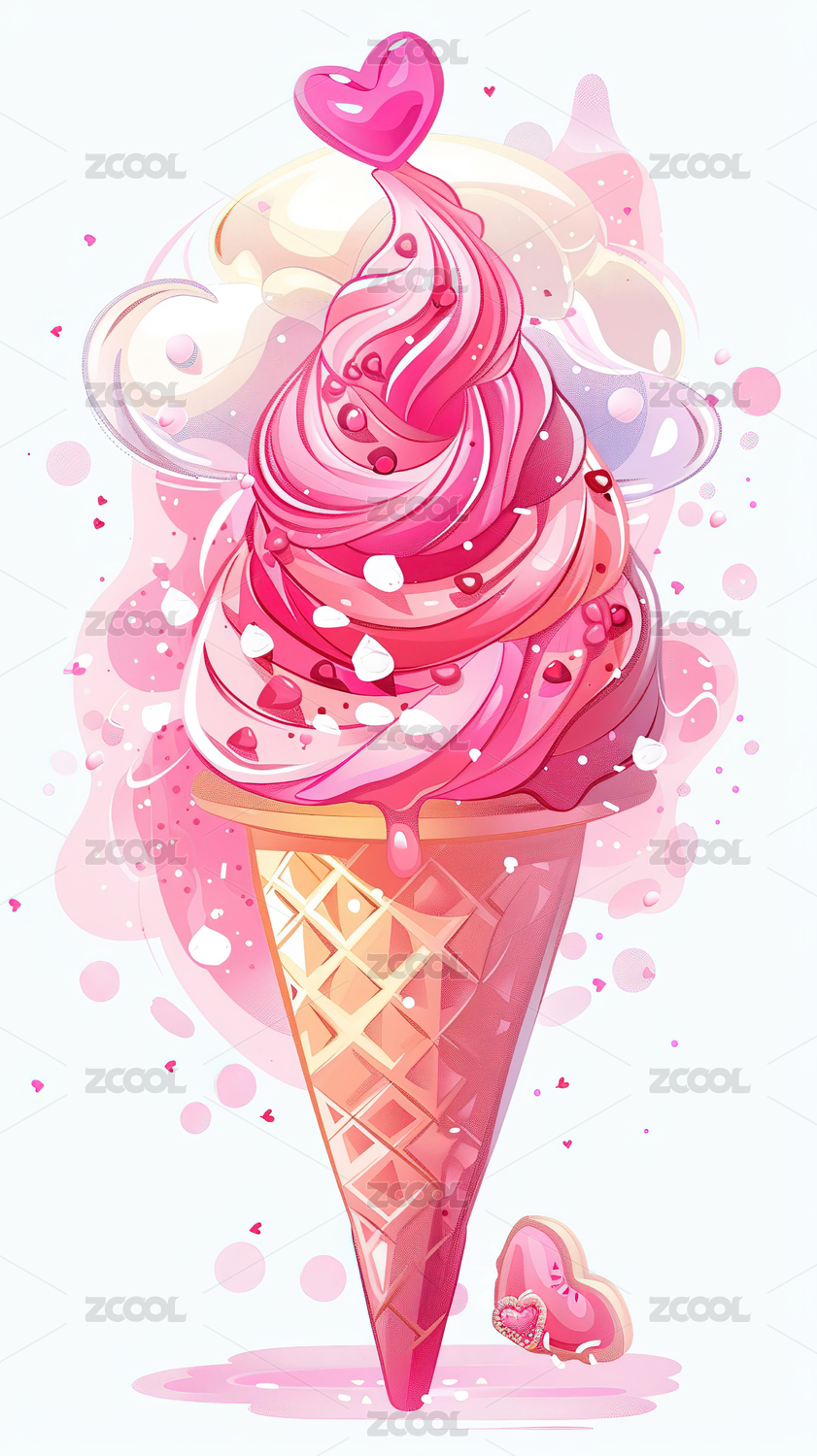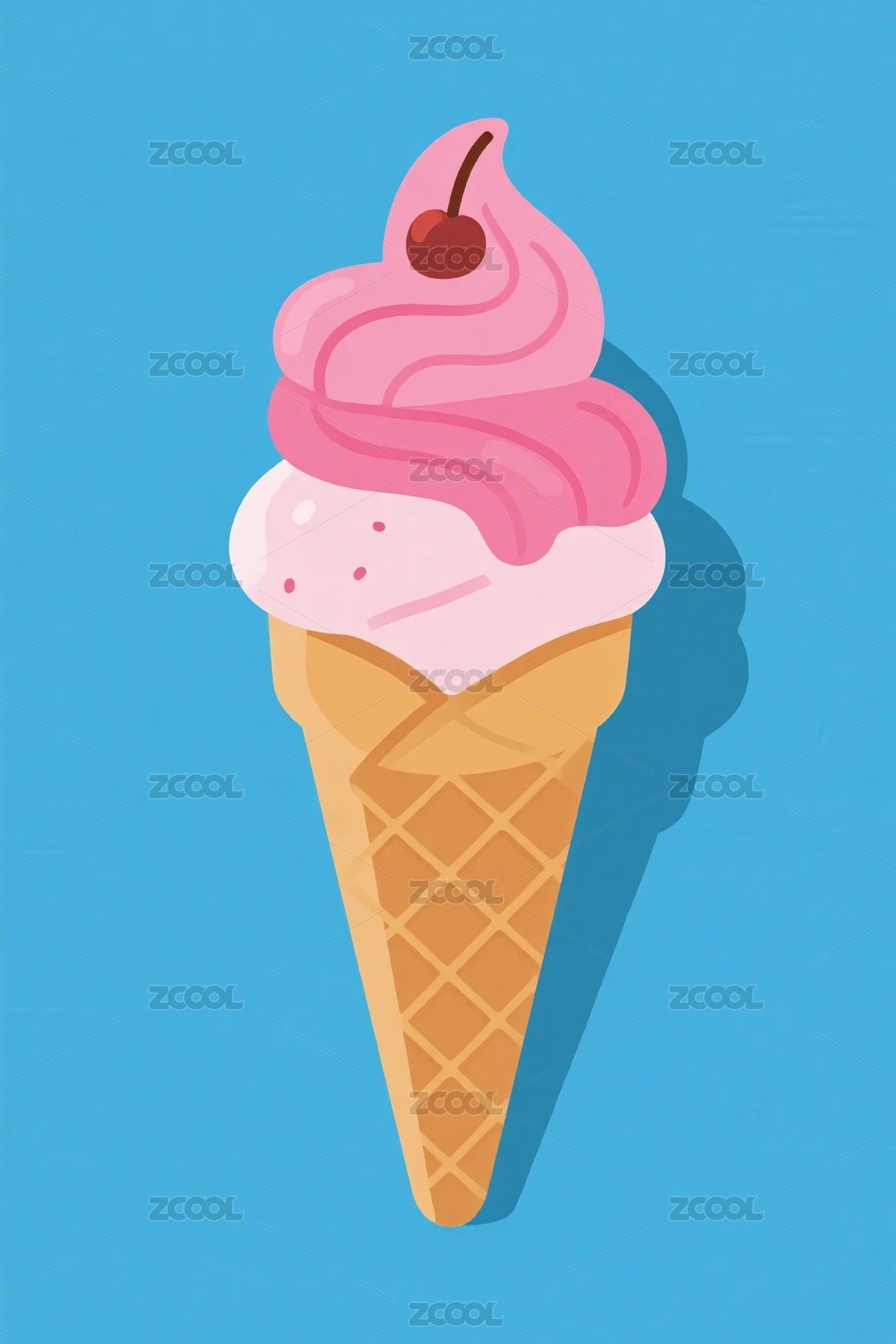 冰淇淋,甜筒,糖珠,樱桃,星星,插画,卡通,模板,可爱,甜点